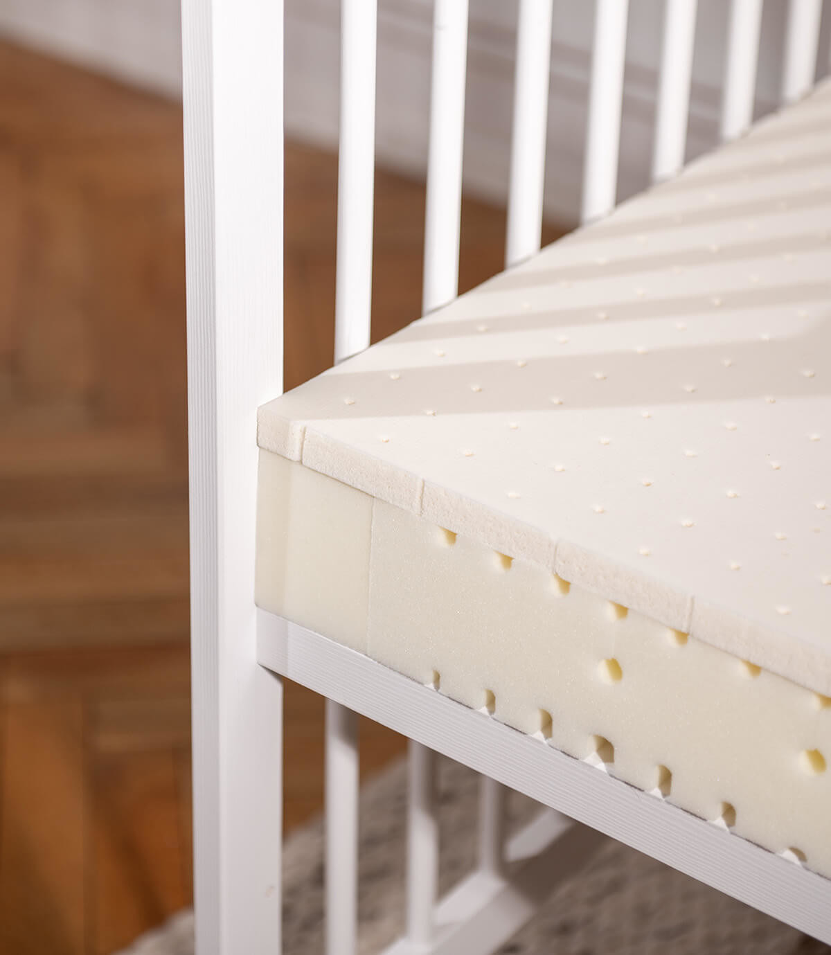 Stabil to materac z trwałym i wysokoelastycznym lateksem w centralnej części, który idealnie dopasowuje się do kształtu ciała maluszka. Wyjątkowe cechy lateksu udało się spotęgować o doskonałą wentylację oraz możliwość naturalnej dezynfekcji lateksu w domowej zamrażarce. Wszystko dzięki procesowi produkcji, który odbywa się na najnowocześniejszych maszynach.