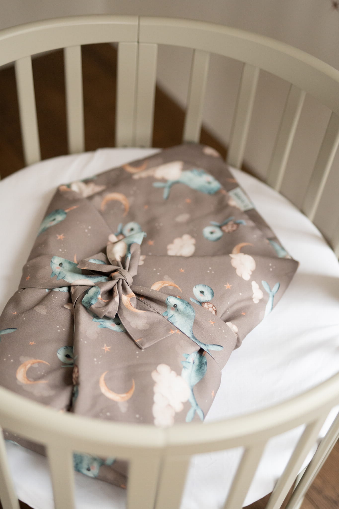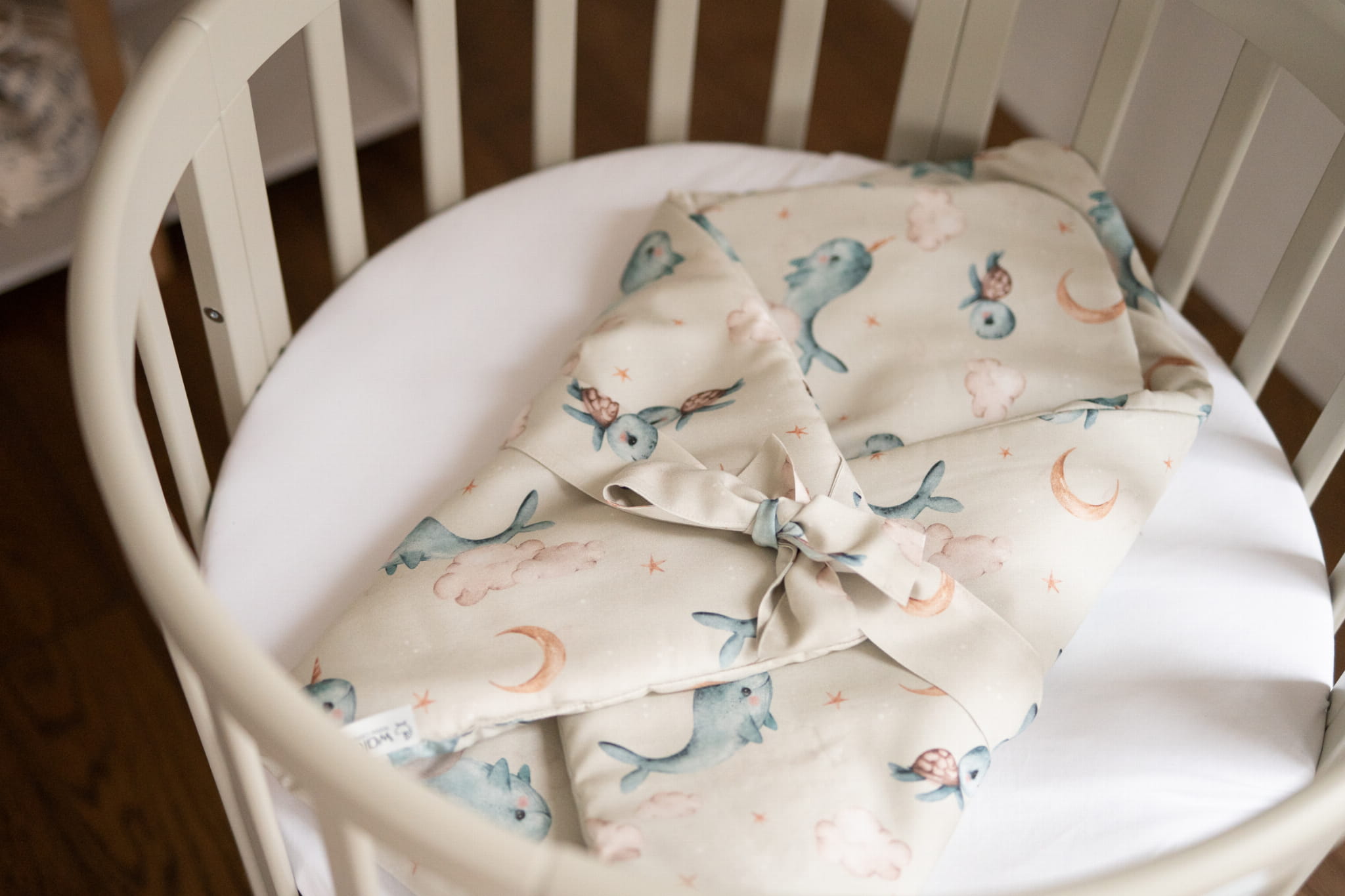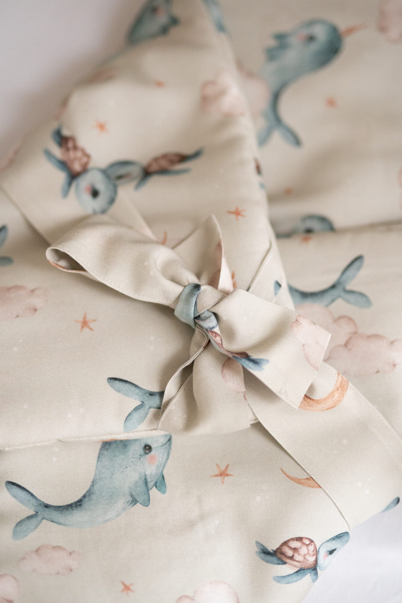 Bambusowa kołdra niemowlęca 75x75 + wstęga do rożka Wieloryb