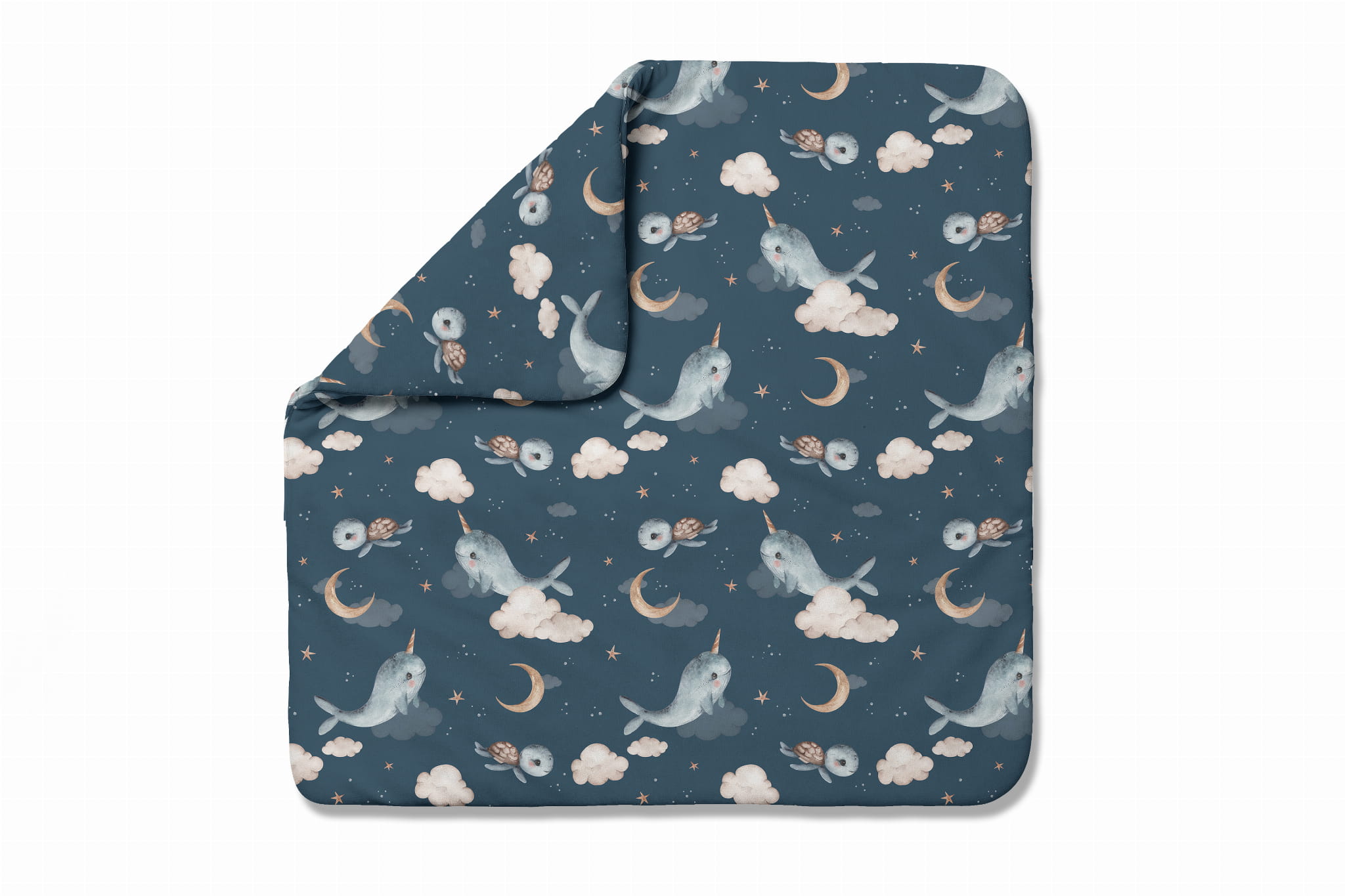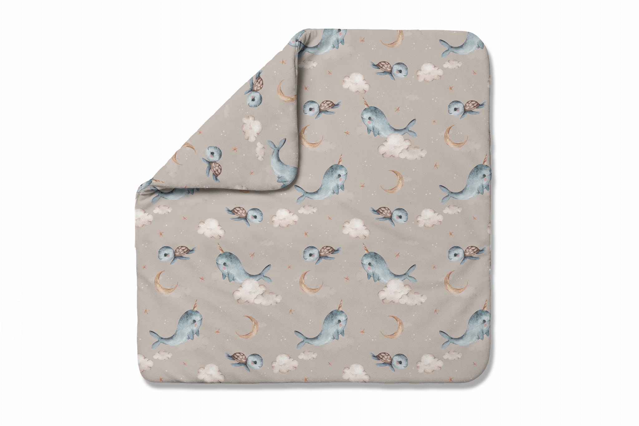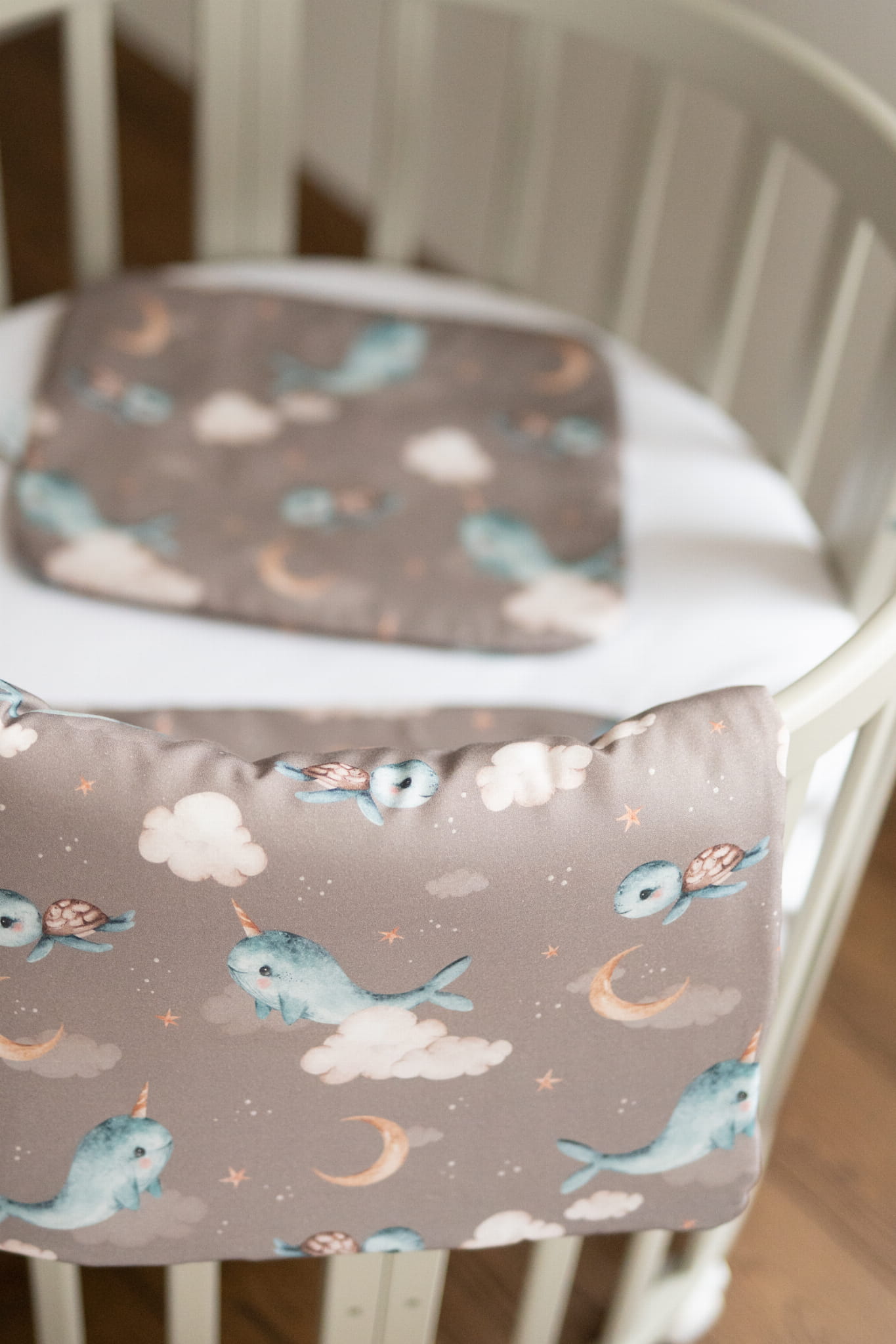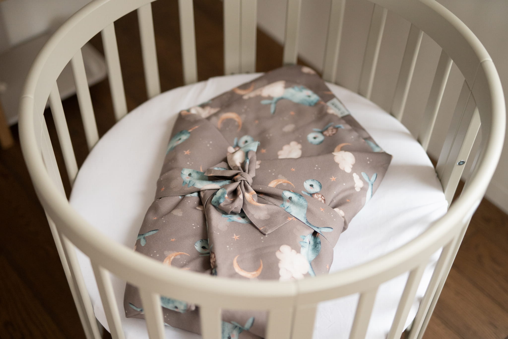 Bambusowa kołdra niemowlęca 75x75 + wstęga do rożka Wieloryb