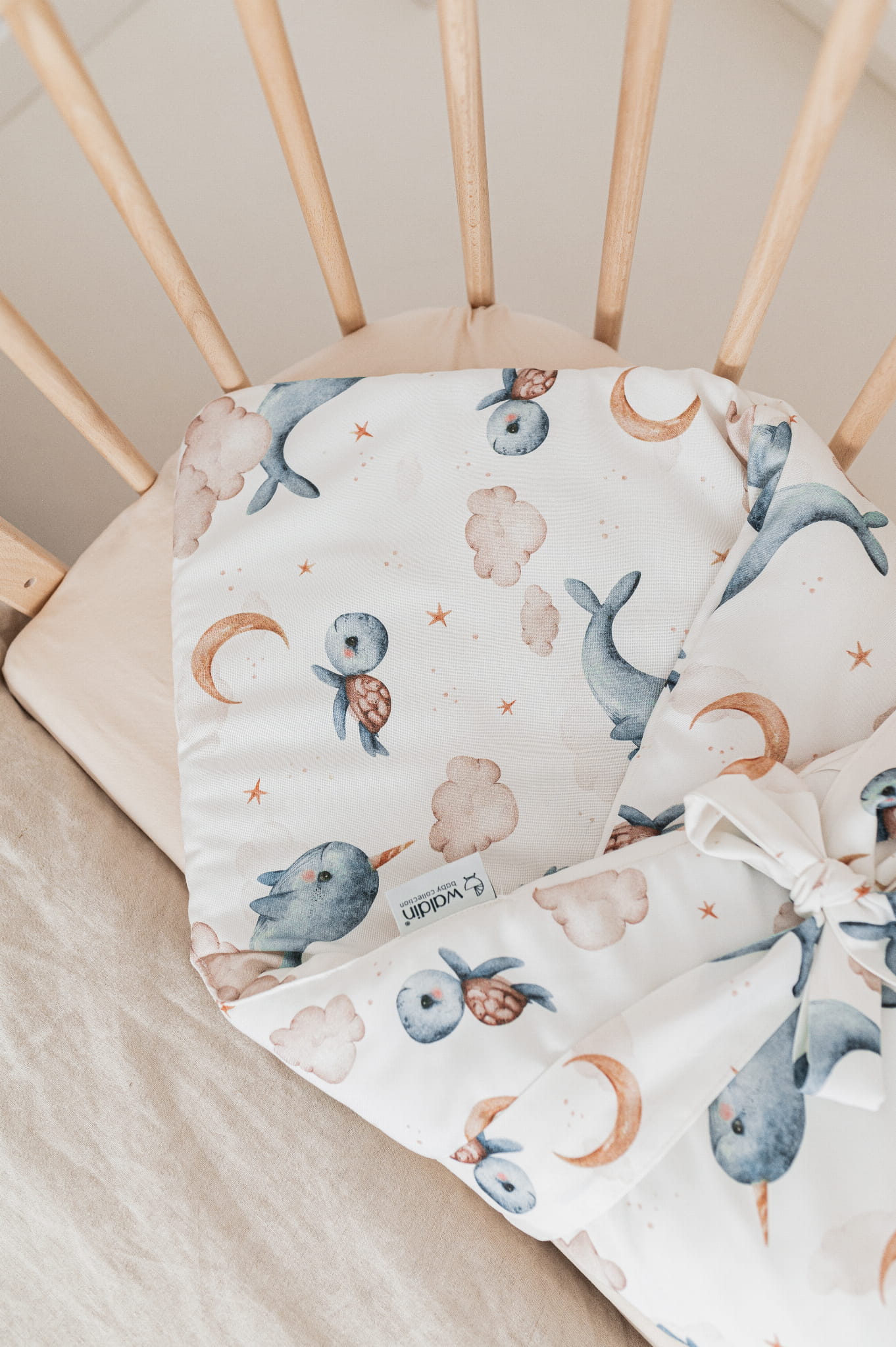 Bambusowa poduszka niemowlęca 30x40 Wieloryby