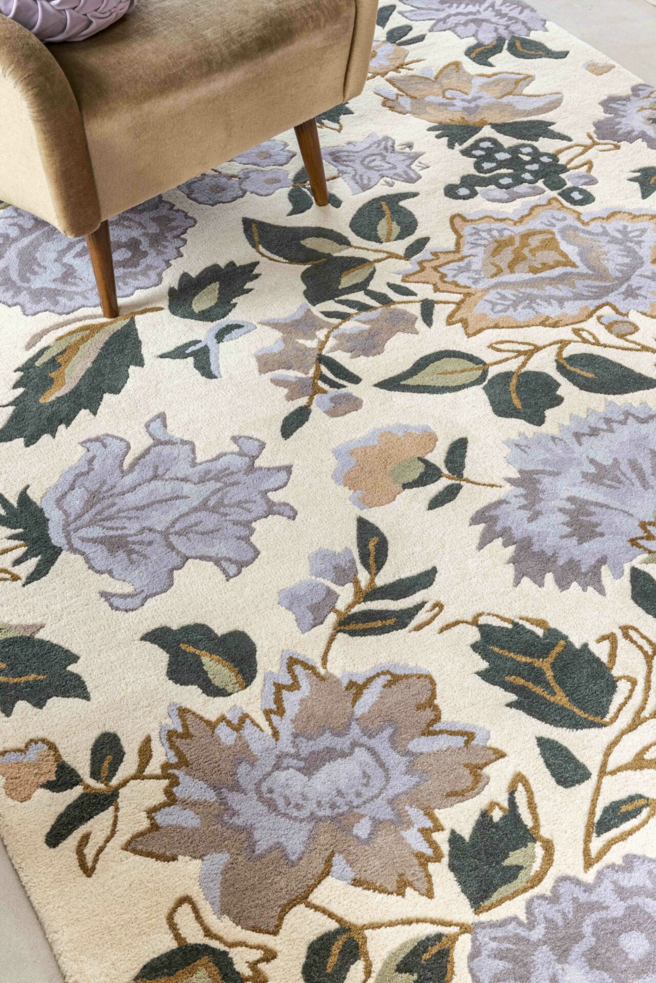 Beżowo-fioletowy dywan w kwiaty WENDLING FLORAL HEATHER PURPLE - ponadczasowa elegancja w Twoim wnętrzu