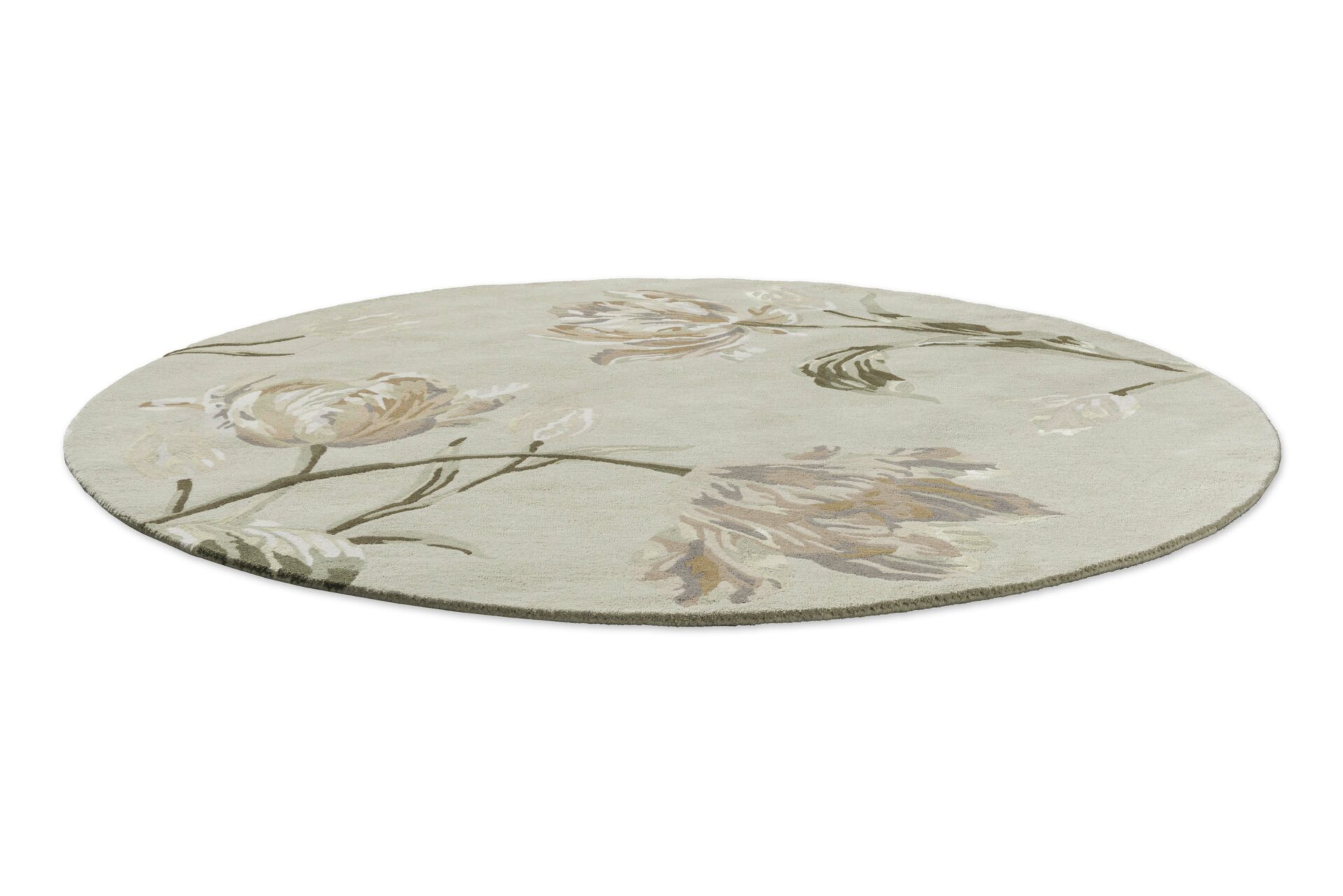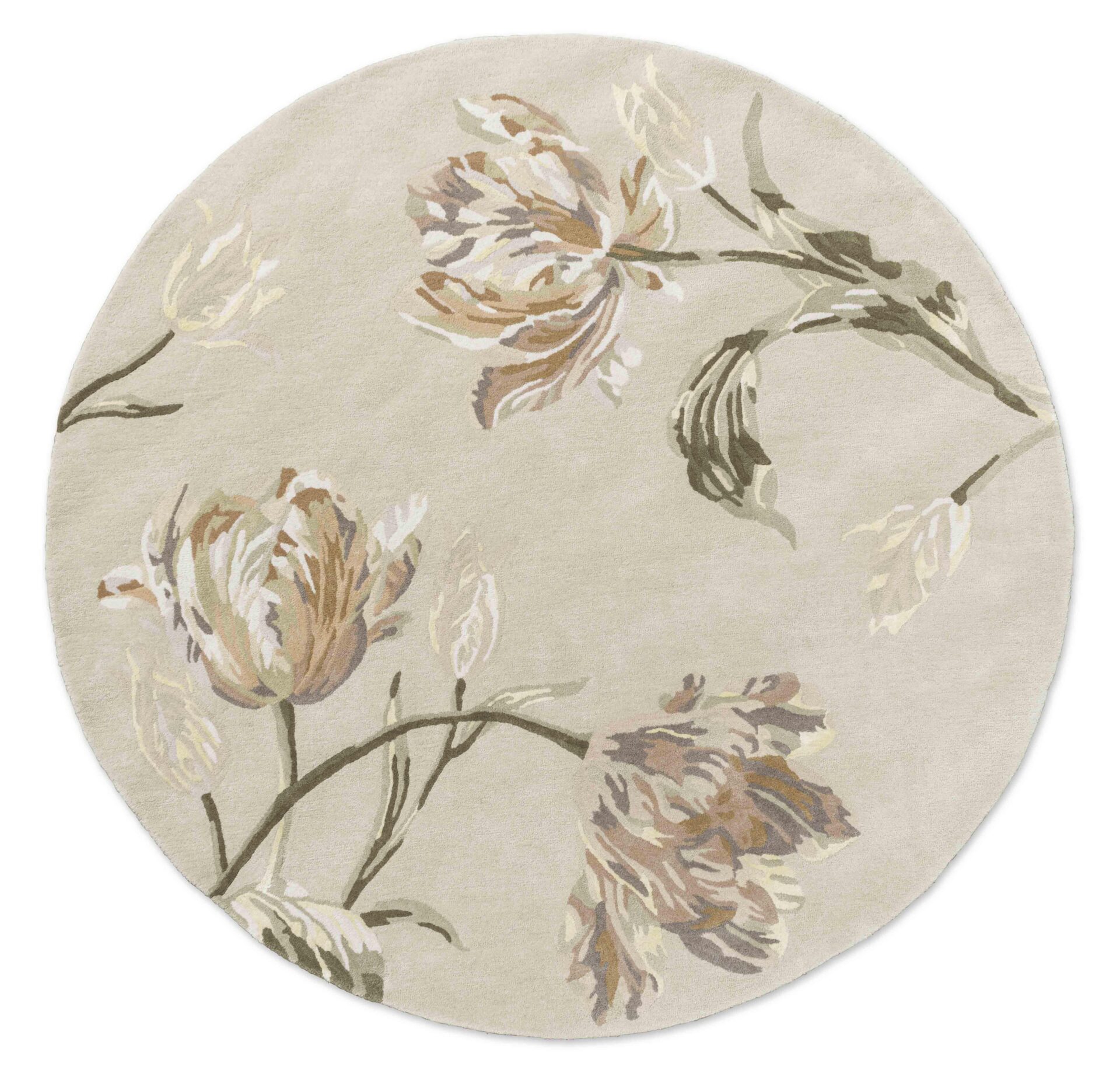 Okrągły beżowy dywan w tulipany GOSFORD NATURAL/SAGE GREEN - klasyka w nowoczesnej formie