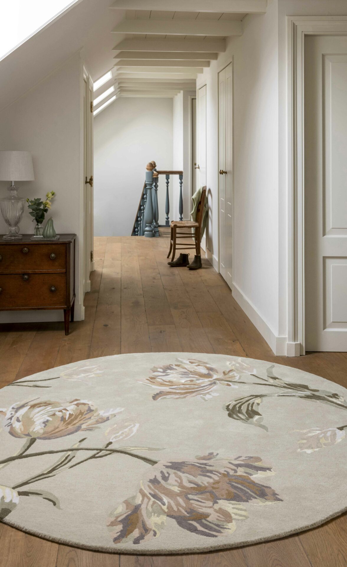 Dywan Gosford Round od brytyjskiej marki Laura Ashley to wyjątkowe połączenie kultowego wzoru papuzich tulipanów z elegancką, okrągłą formą. Ten model wnosi do wnętrza subtelną elegancję i świeżość, a jego wyrazisty, a zarazem delikatny motyw kwiatowy tworzy atmosferę luksusu i ponadczasowego stylu.