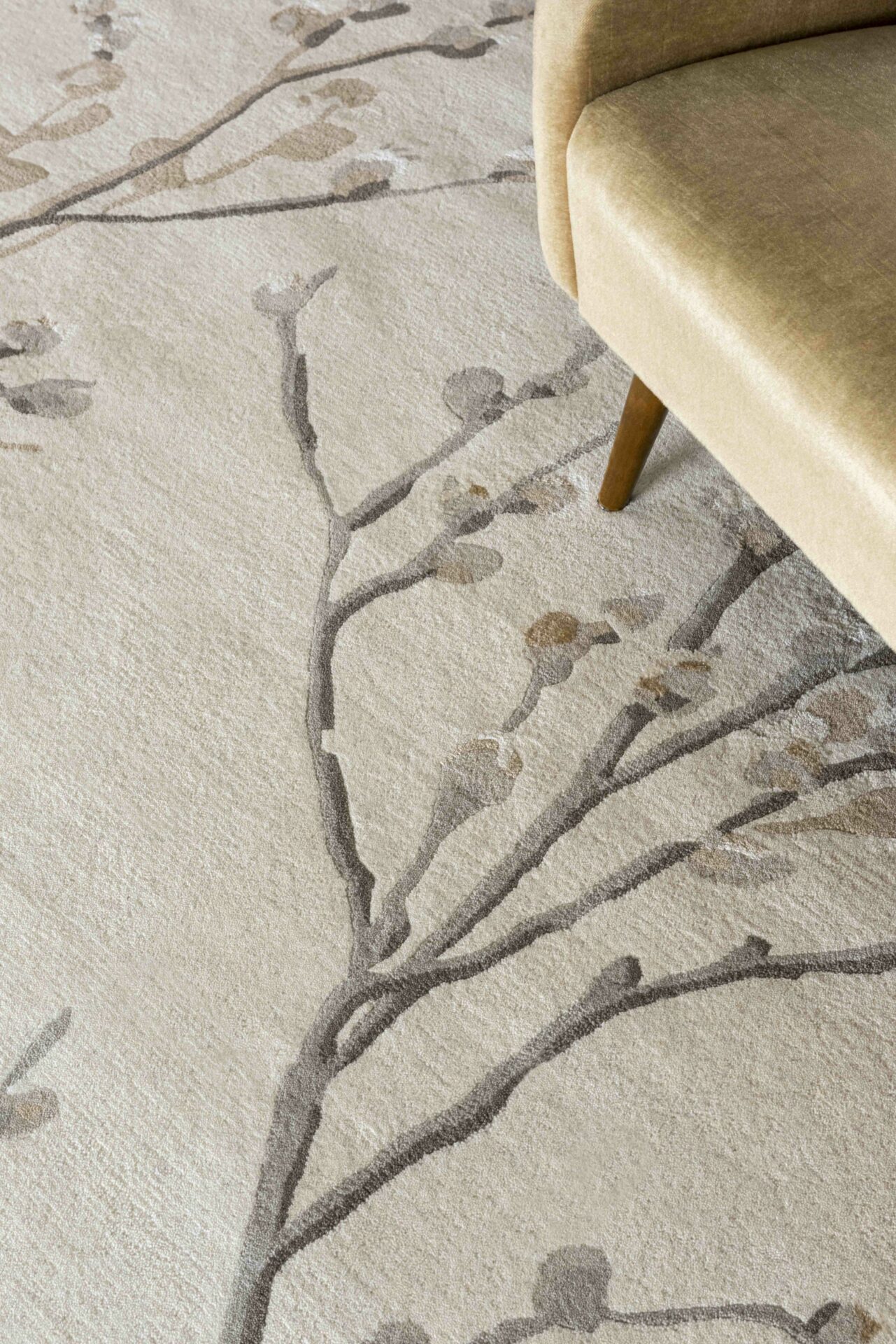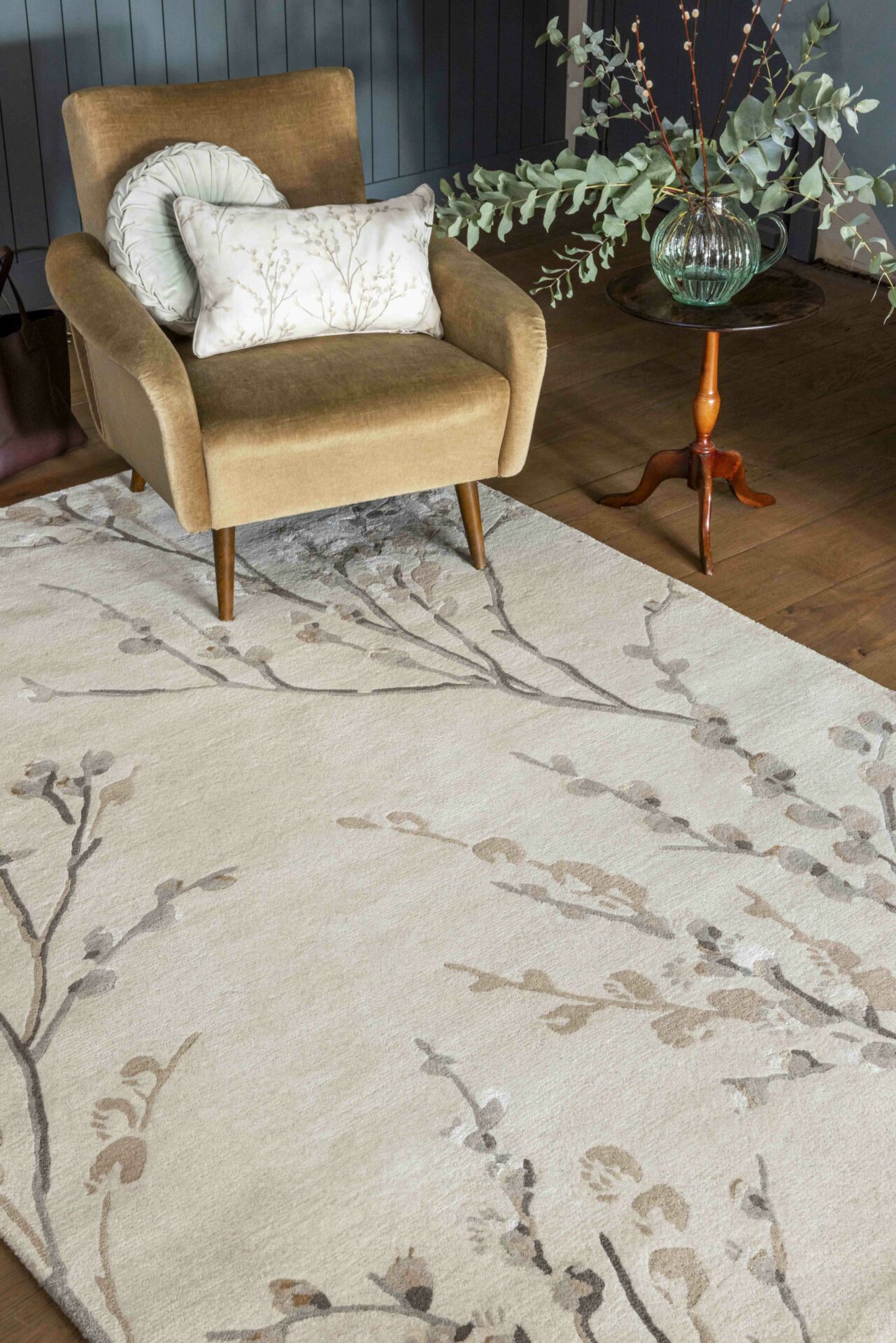 Beżowy dywan z motywem roślinnym PUSSY WILLOW DOVE GREY - subtelna elegancja natury