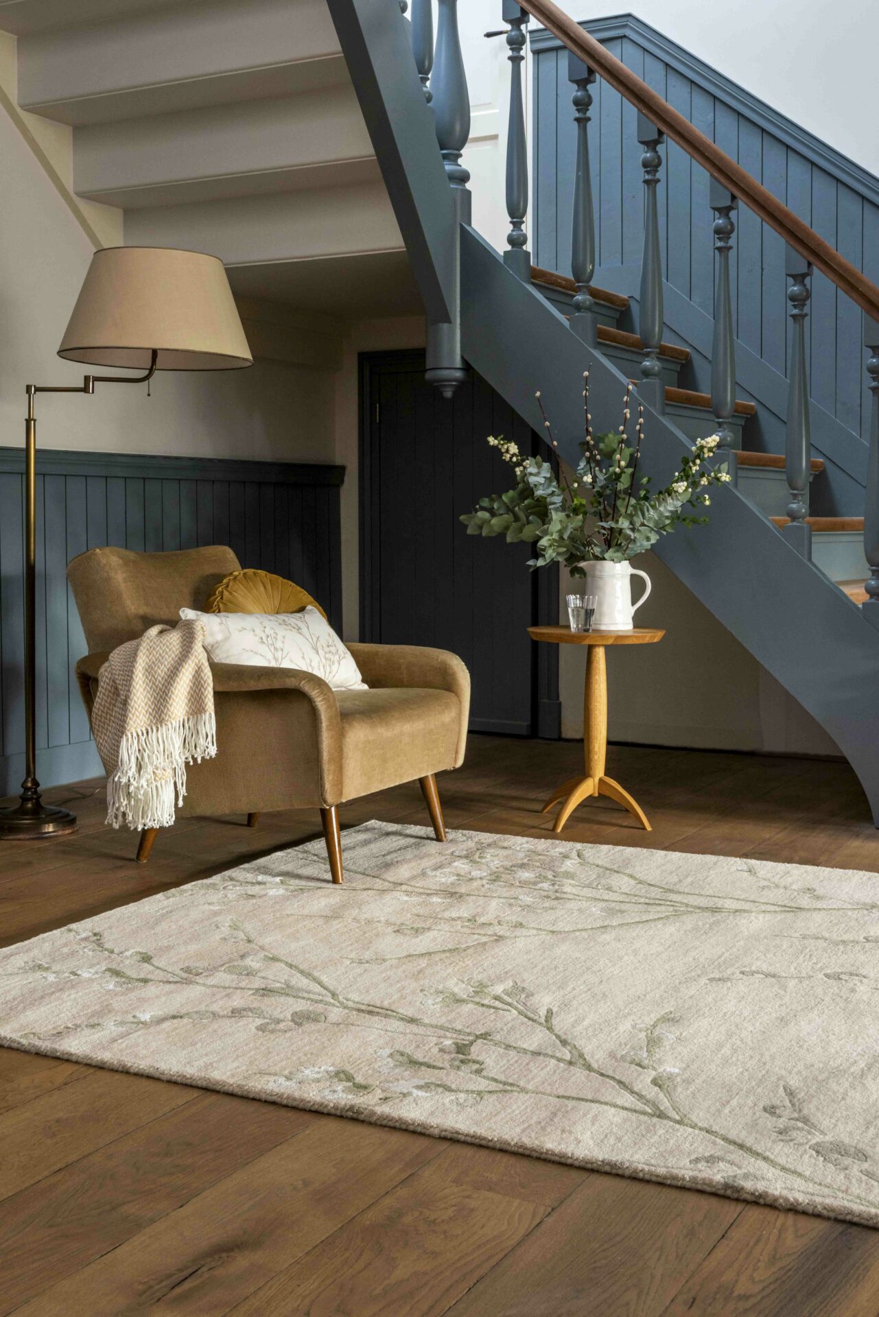 Beżowy dywan z motywem roślinnym PUSSY WILLOW HEDGEROW GREEN - świeżość natury w Twoim wnętrzu