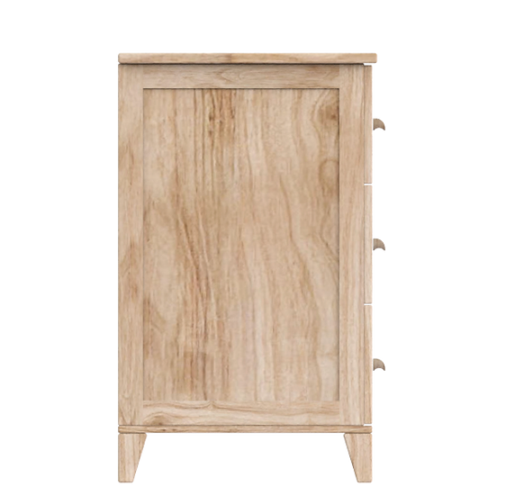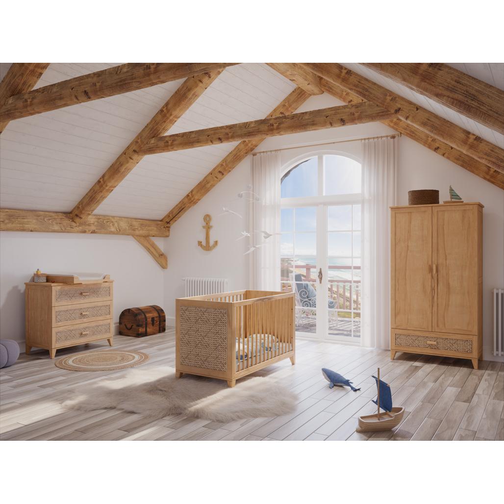 Komoda Nami Bois wykonana jest z litego drewna, a fronty szuflad zdobi naturalna plecionka rattanowa. Drewno cedrowe, Melia pospolita oraz Miodla indyjska, pochodzące z ekologicznie zarządzanych lasów, nadają meblowi naturalny zapach oraz trwałość na długie lata.