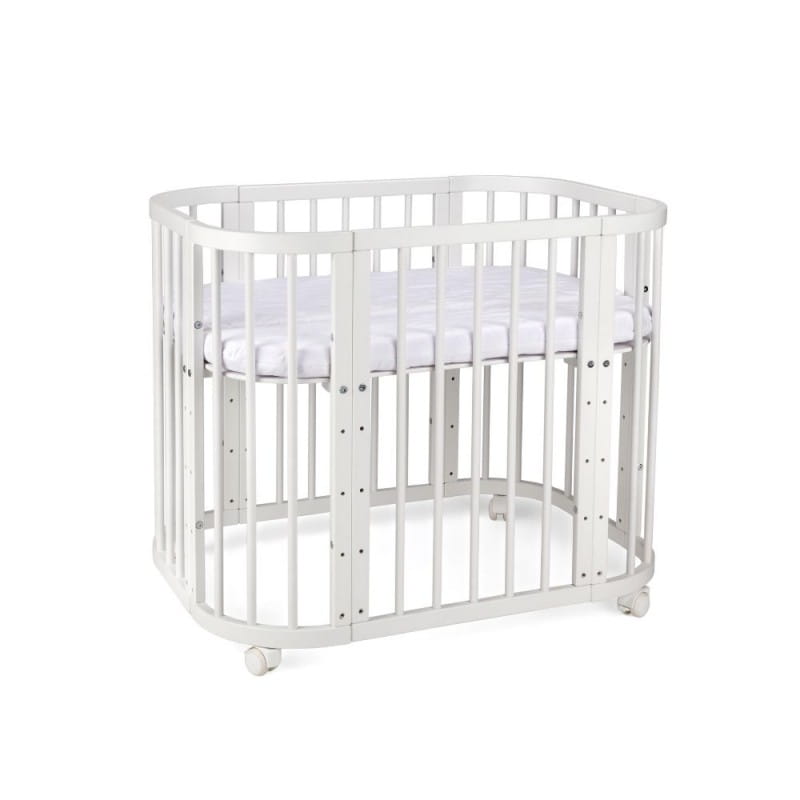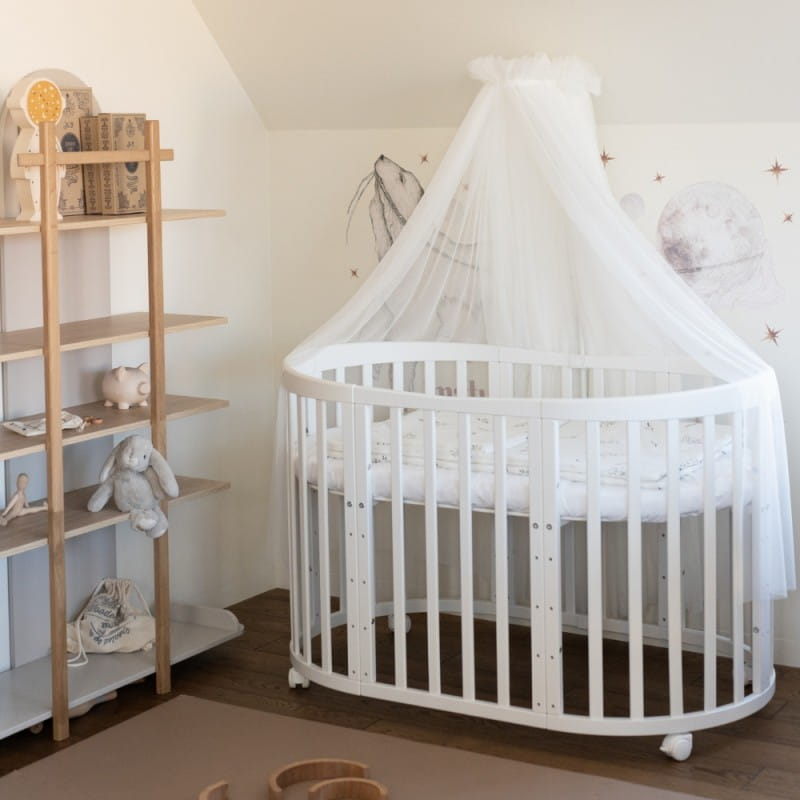 Model łóżeczka 5 w 1 został wykonany z drewna bukowego. Przekłada się to na zwiększoną odporność na uszkodzenia czy pęknięcia. Poza tym drewno to pięknie się prezentuje, więc zyskujesz pewność, że kołyska nie zaburzy wyglądu dziecięcej przestrzeni. Jako że jest to model, który może służyć jako łóżeczko, kołyska i stoliczek w jednym, to staje się jednocześnie łatwym elementem aranżacyjnym w pokoiku malucha. Solidne wykonanie i możliwość dostosowania wysokości podłogi sprawia, że to białe łóżeczko dla dziecka posłuży przez co najmniej 3-4 lata.