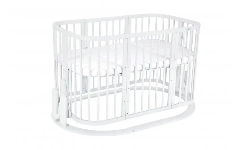 5 funkcji w jednym produkcie to gwarancja uniwersalności zastosowania. Kupując model 5 w 1, zapewniasz sobie wieloletnie użytkowanie i to na różnych etapach rozwoju swojego maluszka. Kołyska będzie idealna dla dziecka, które potrzebuje ukojenia do snu – w końcu bujanie uspokaja i daje poczucie bezpieczeństwa. Zamieniając kołyskę w dostawkę, masz z kolei pewność, że Twój malec jest blisko Ciebie w nocy i masz na niego idealny widok. Mebel posiada także w zestawie 2-częściowy materac o wysokości 6 cm, który został powleczony pokrowcem. Można go prać w temp. 30°C.