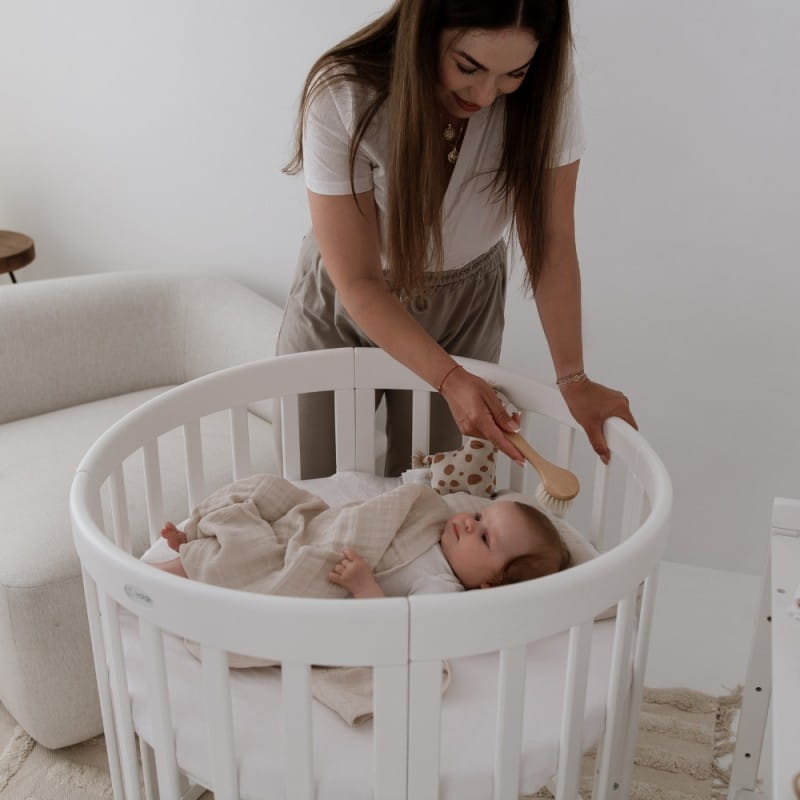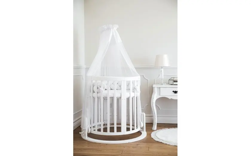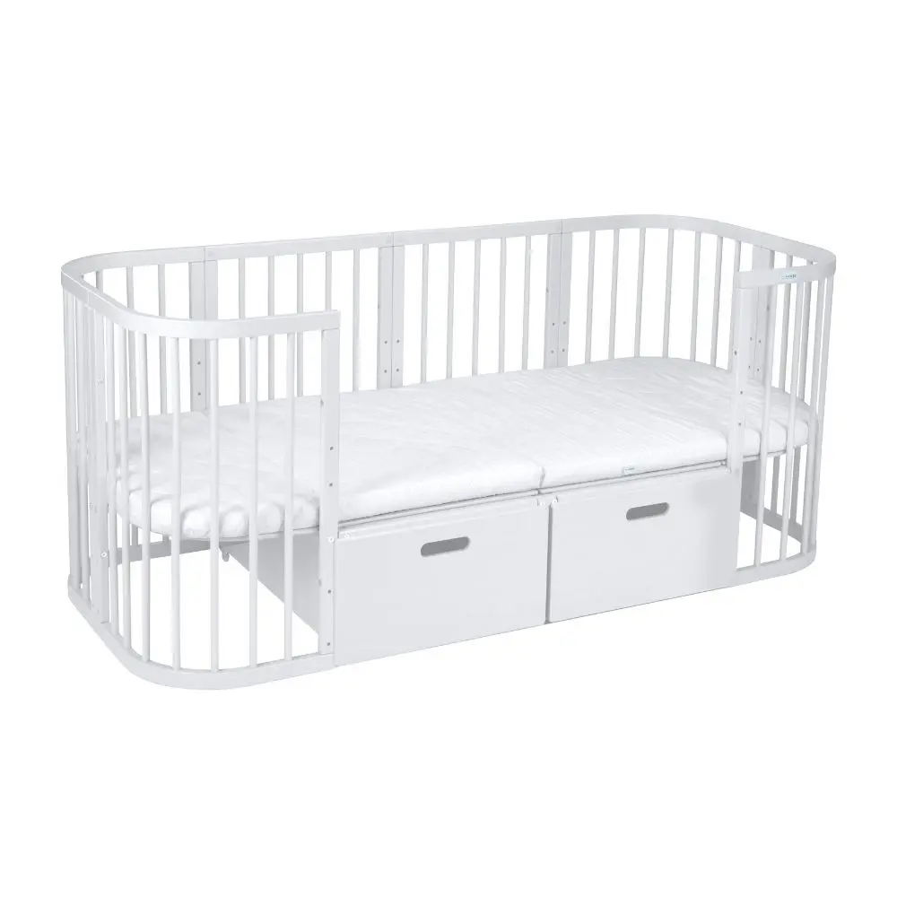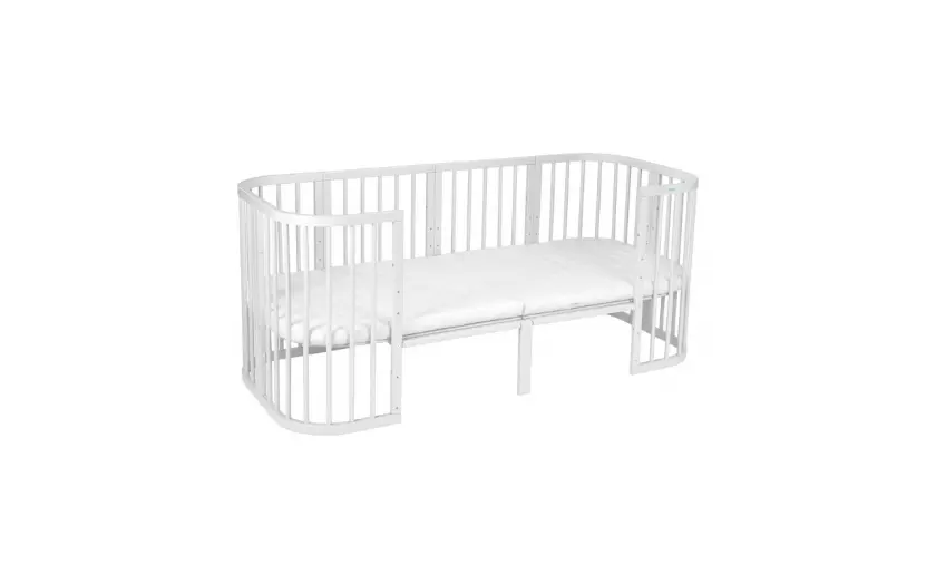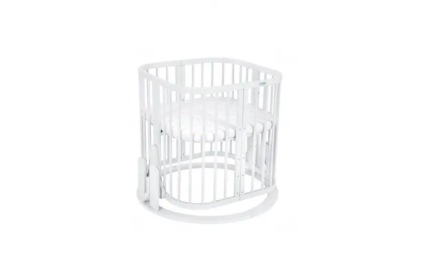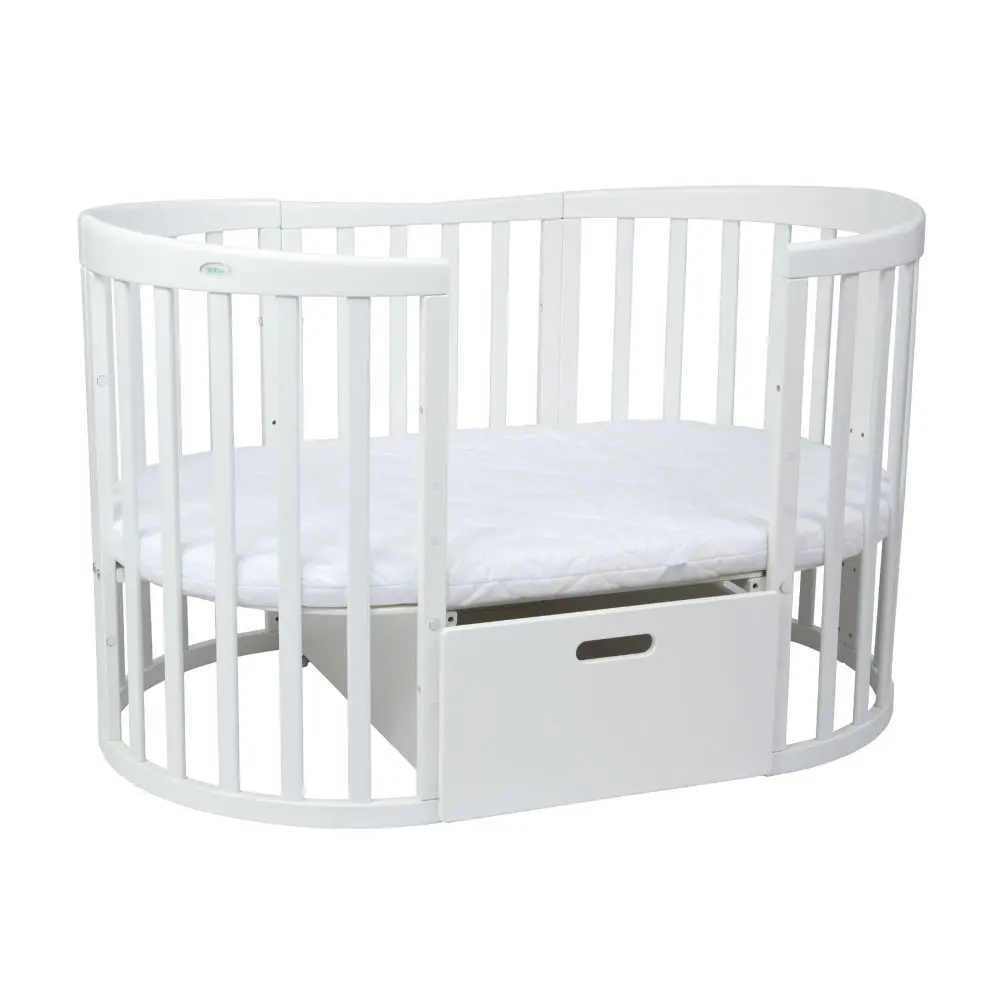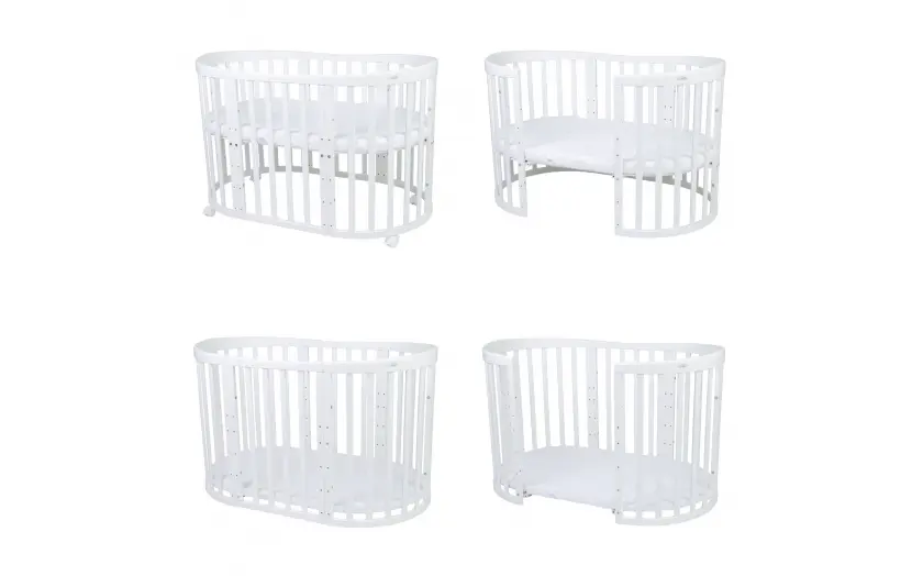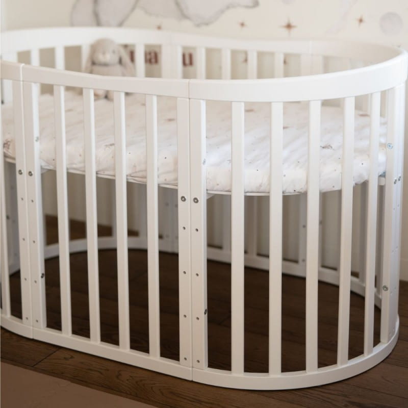 Drewniane Łóżeczko 7w1 z materacem Białe owalne