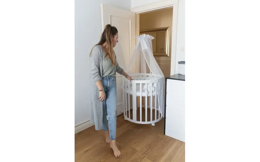 Łóżeczko wyposażone jest w gumowane kółka o wysokości 6 cm, które ułatwiają przemieszczanie mebla, a jednocześnie zapewniają ochronę podłogi. Dzięki blokadzie masz pewność, że łóżeczko pozostanie stabilne w wybranym miejscu.