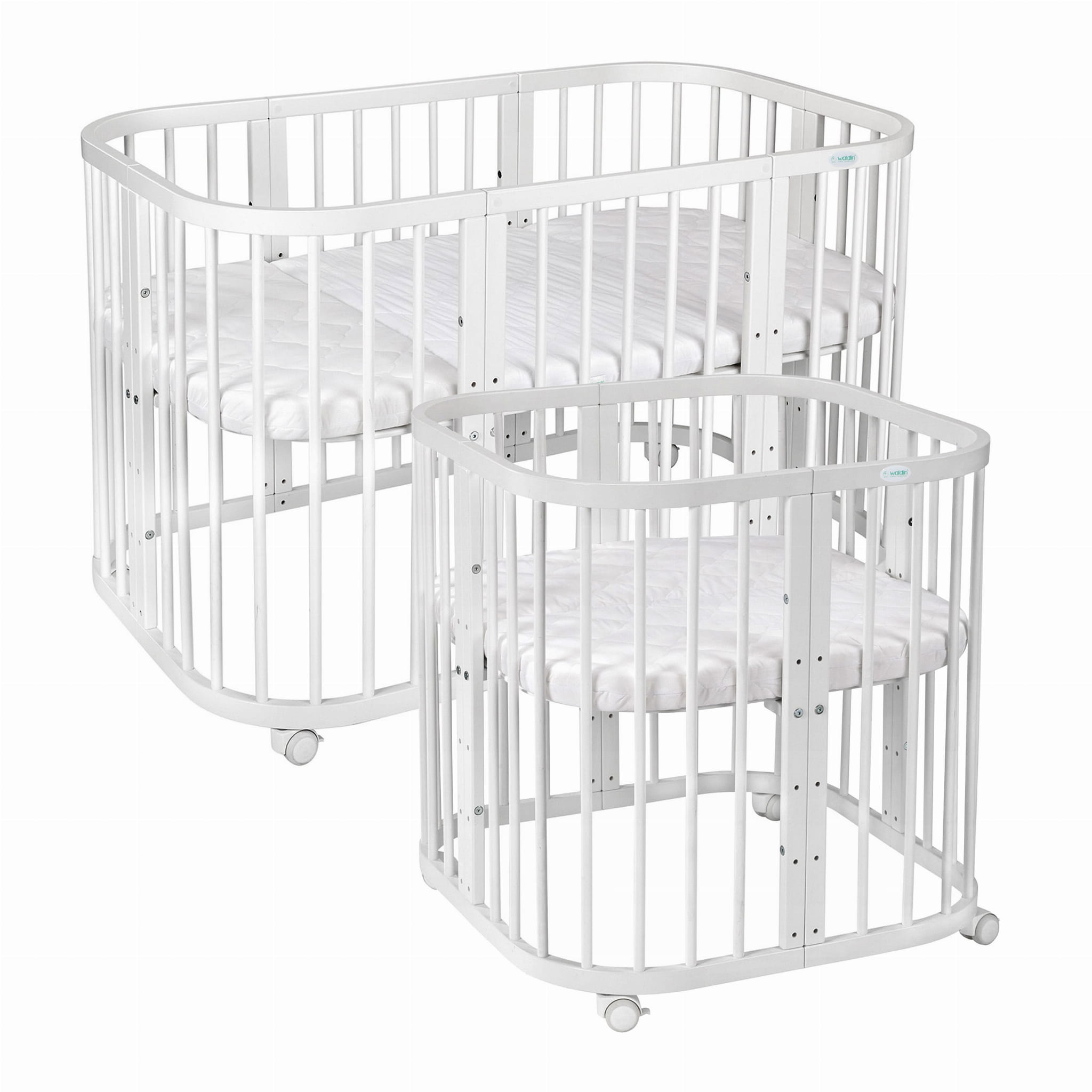 W zestawie otrzymujesz 3-częściowy materac z pianki o twardości T25 w bawełnianych pokrowcach wykonanych z miękkiej, oddychającej bawełny, z możliwością zdejmowania i prania. – wys. 6 cm. Jednak masz możliwość skompletowania łóżeczka wraz z dodatkowym, odpowiednio wyprofilowanym do niego materacem. Ich twardość (H2/H3/H4 - w odpowiedniej konfiguracji) to kompromis pomiędzy twardym, niewygodnym dla Twojego maluszka materacem, a zbyt miękkim, który nie byłby w stanie zapewnić odpowiedniego podparcia dla rosnącego kręgosłupa Twojego dziecka.