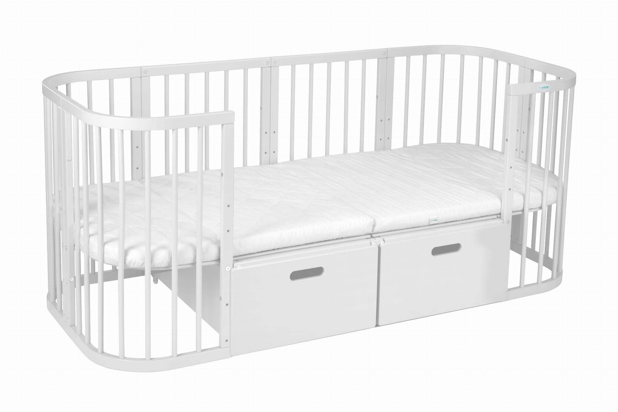 - Rozszerzenie łóżeczka - dodatkowy moduł łóżeczka dziecięcego, zaprojektowany w celu przedłużenia jego funkcjonalności i dostosowania do zmieniających się potrzeb rosnącego dziecka. Umożliwia stopniowe przekształcanie łóżeczka niemowlęcego w większe łóżko dla starszego dziecka, poprzez wydłużenie konstrukcji. Dzięki temu rozwiązaniu mebel "rośnie" wraz z dzieckiem, eliminując potrzebę zakupu kolejnych łóżek na różnych etapach rozwoju i zapewniając długoterminową wygodę oraz oszczędność.