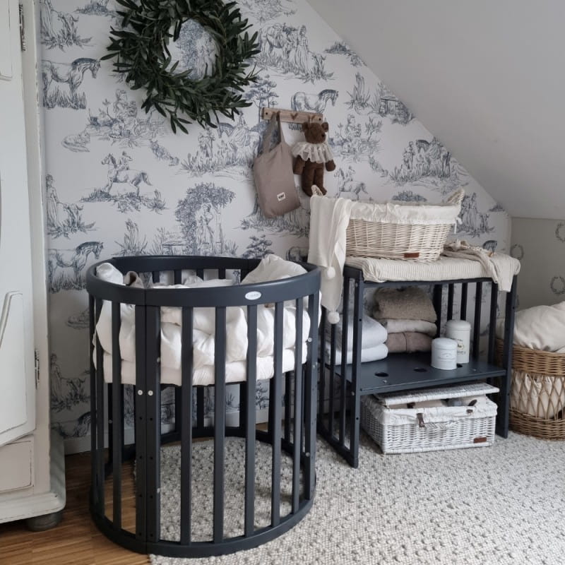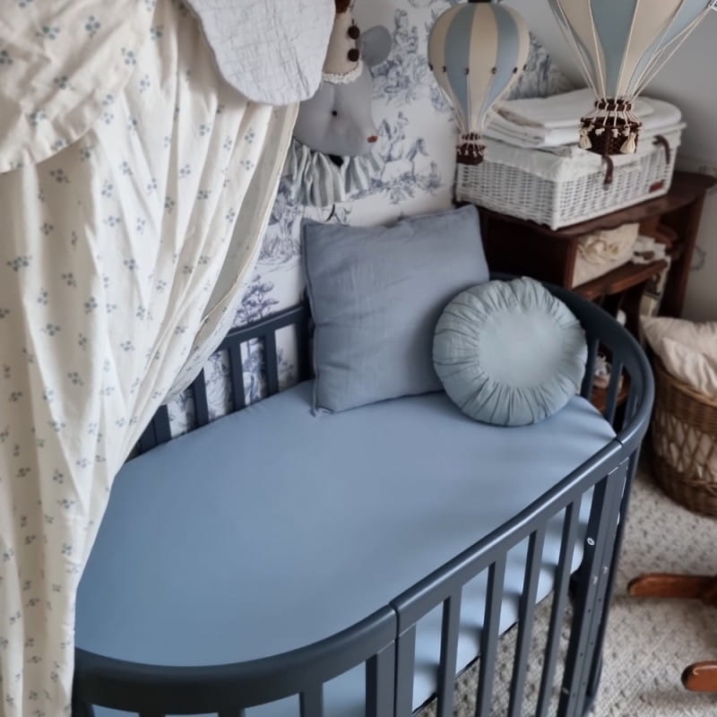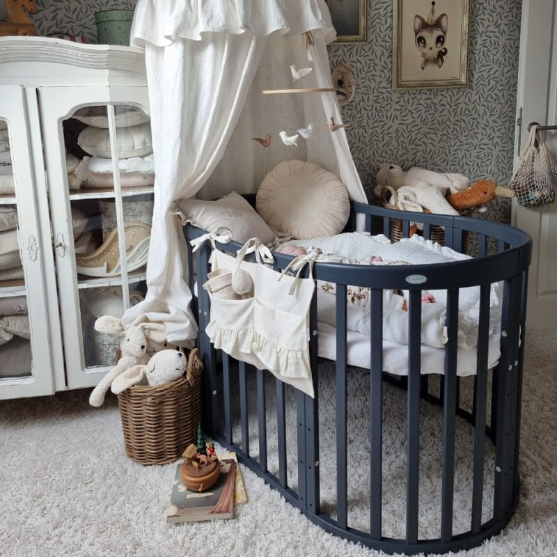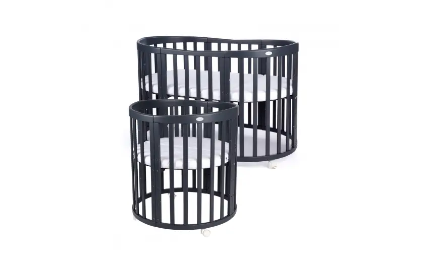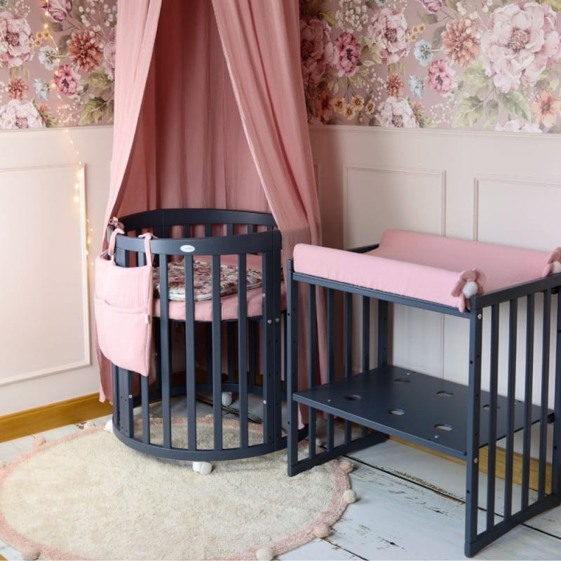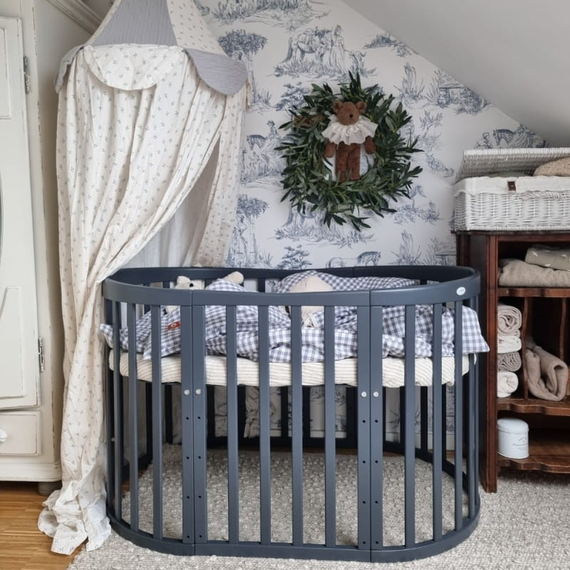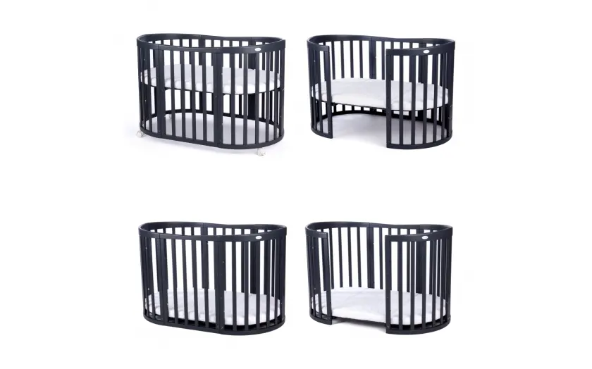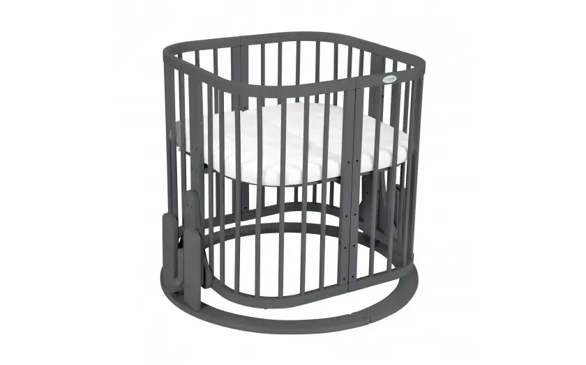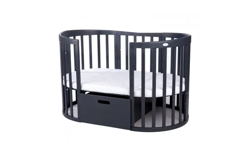 Drewniane Łóżeczko 7w1 z materacem Grafitowe owalne