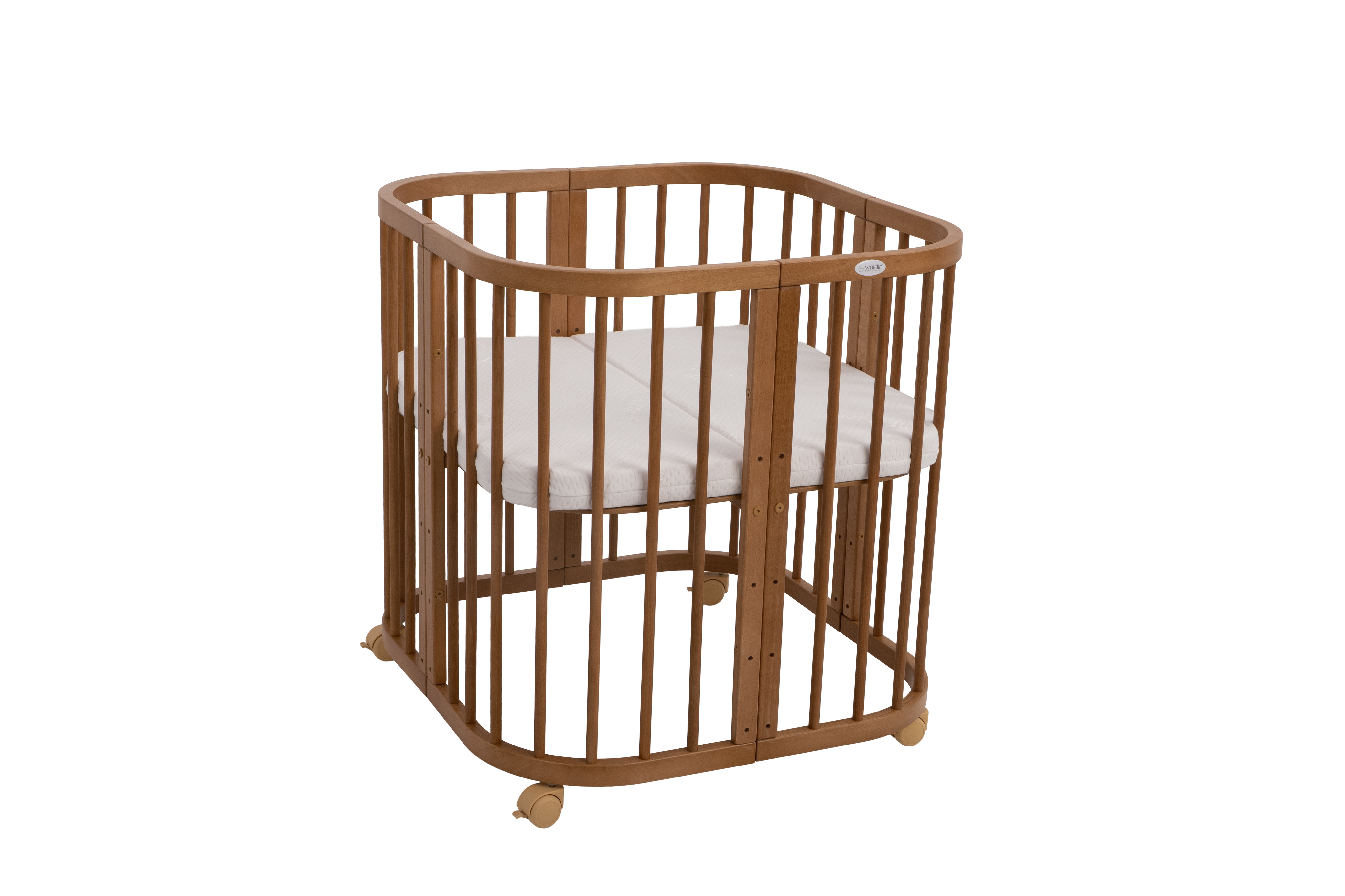 - Mniejsze łóżeczko: wysokość 75 cm, szerokość 77,5 cm, długość 77,5 cm