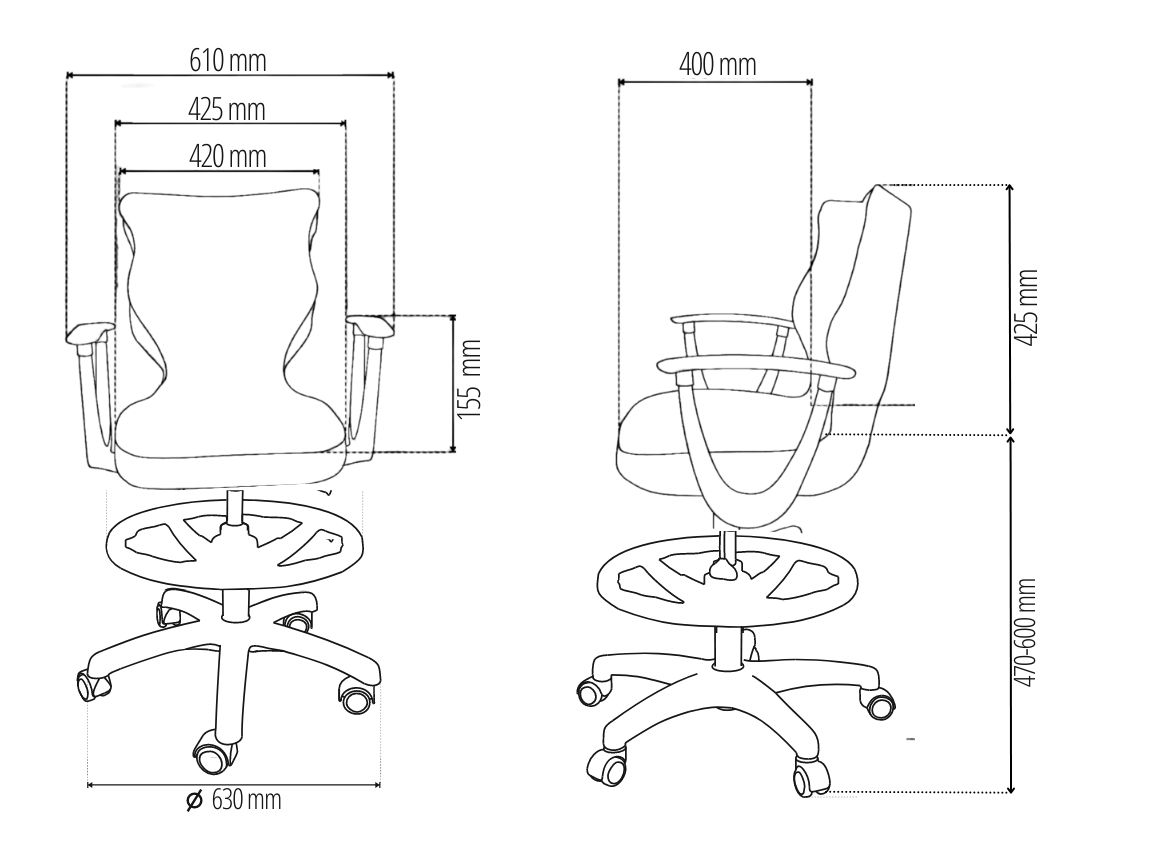 Przy wyborze krzesła biurkowego kieruj się wzrostem dziecka: 146-176,5 lub 159-188 cm.