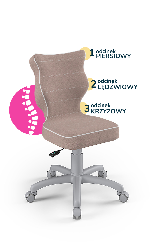 Entelo Ergonomiczne krzesło biurkowe dla dzieci Petit blady róż szara podstawa