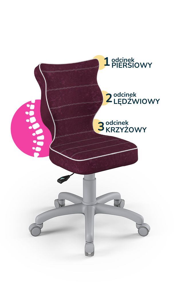 Entelo Ergonomiczne krzesło biurkowe dla dzieci Petit fioletowe szara podstawa