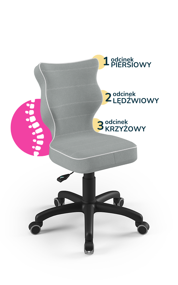 Entelo Ergonomiczne krzesło biurkowe dla dzieci Petit szary z czarną podstawą