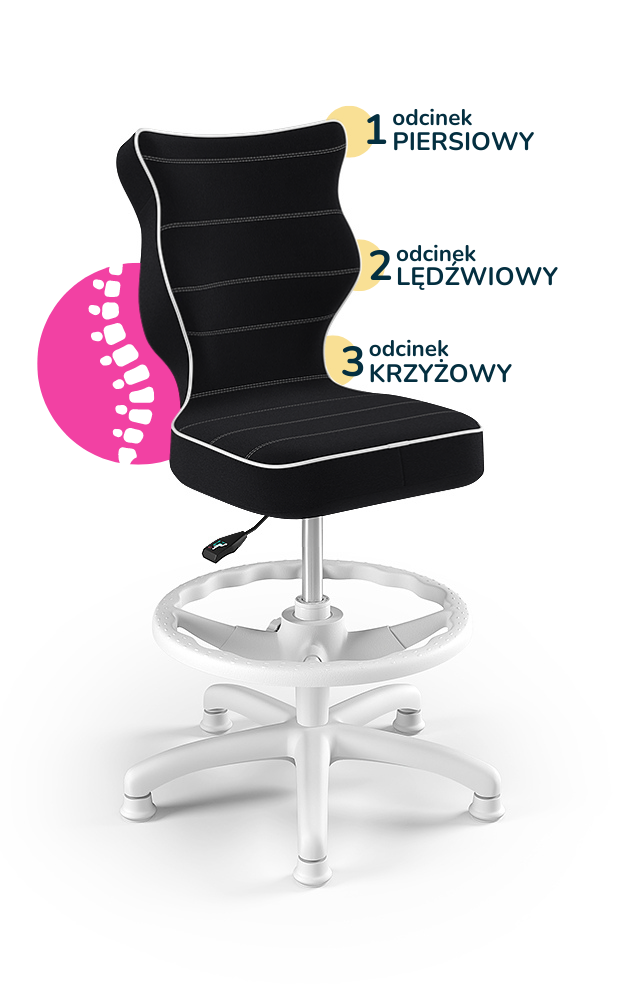 Entelo Ergonomiczne krzesło biurkowe dla dzieci Petit z podnóżkiem czarne biała podstawa