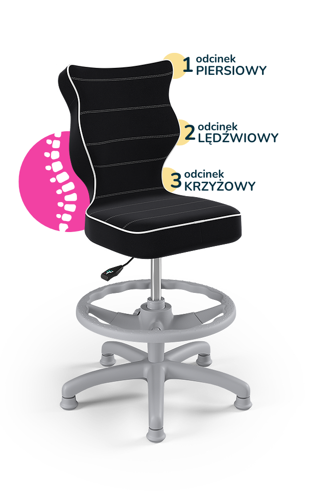 Entelo Ergonomiczne krzesło biurkowe dla dzieci Petit z podnóżkiem czarne szara podstawa