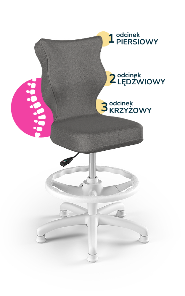 Entelo Ergonomiczne krzesło biurkowe dla dzieci Petit z podnóżkiem szare biała podstawa