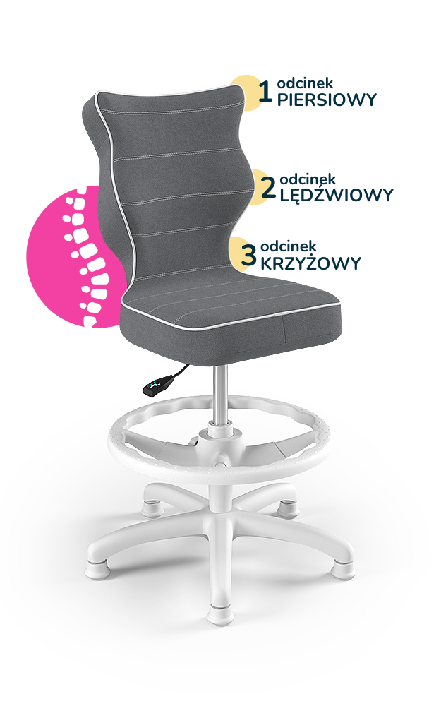 Entelo Ergonomiczne krzesło biurkowe dla dzieci Petit z podnóżkiem szare biała podstawa
