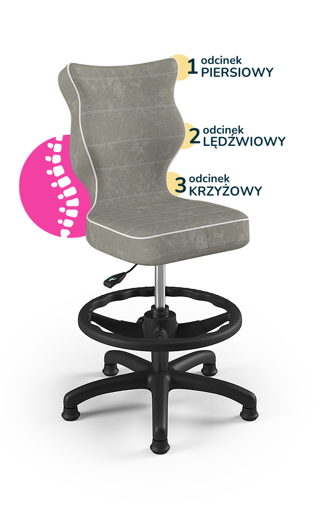 Entelo Ergonomiczne krzesło biurkowe dla dzieci Petit z podnóżkiem szare czarna podstawa