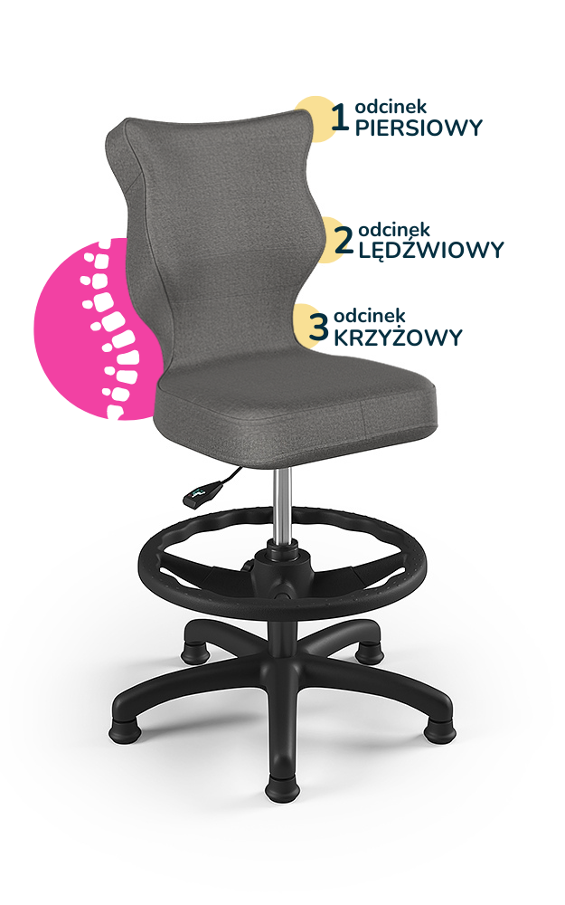 Entelo Ergonomiczne krzesło biurkowe dla dzieci Petit z podnóżkiem szare czarna podstawa
