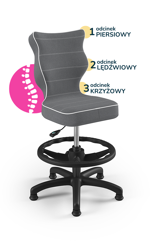 Entelo Ergonomiczne krzesło biurkowe dla dzieci Petit z podnóżkiem szare czarna podstawa