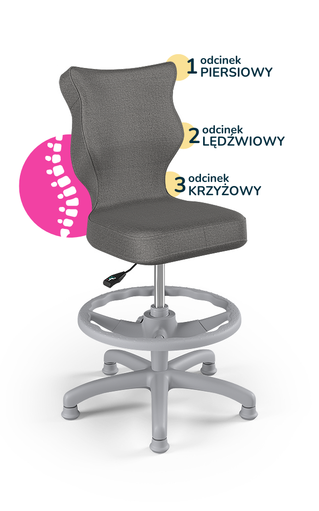 Entelo Ergonomiczne krzesło biurkowe dla dzieci Petit z podnóżkiem szare z szarą podstawą