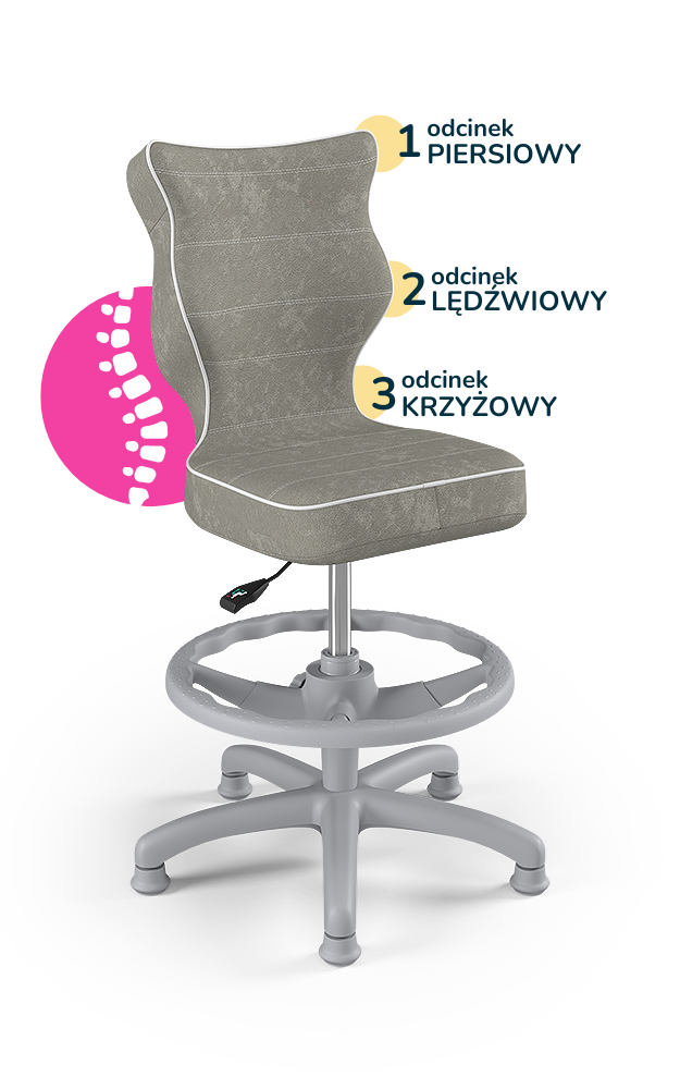 Entelo Ergonomiczne krzesło biurkowe dla dzieci Petit z podnóżkiem szare