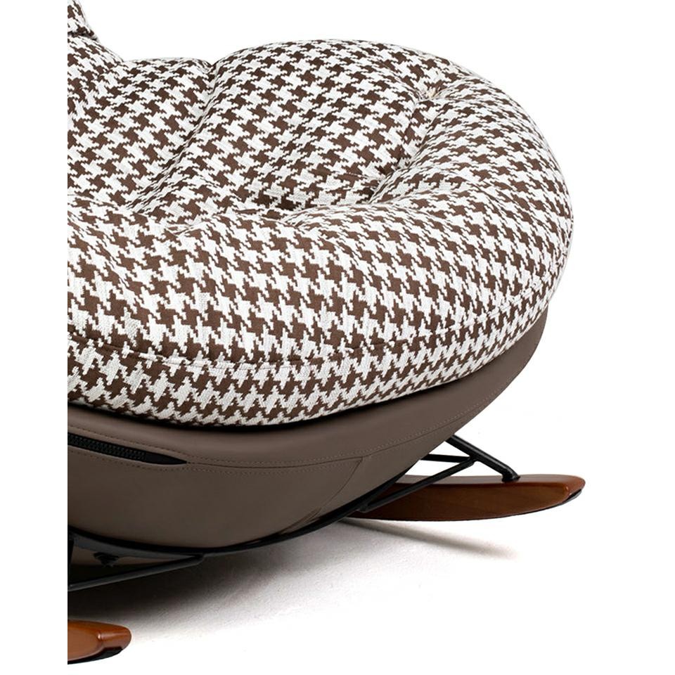 Odkryj niezwykłe połączenie nowoczesności i klasyki z fotelem bujanym FATTY brązowa pepitka. To mebel, który zapewnia wyjątkowy komfort, a przy tym staje się stylową ozdobą wnętrza. Jego staranne wykonanie i niebanalny design sprawiają, że idealnie komponuje się zarówno z nowoczesnymi aranżacjami, jak i z bardziej tradycyjnymi przestrzeniami.