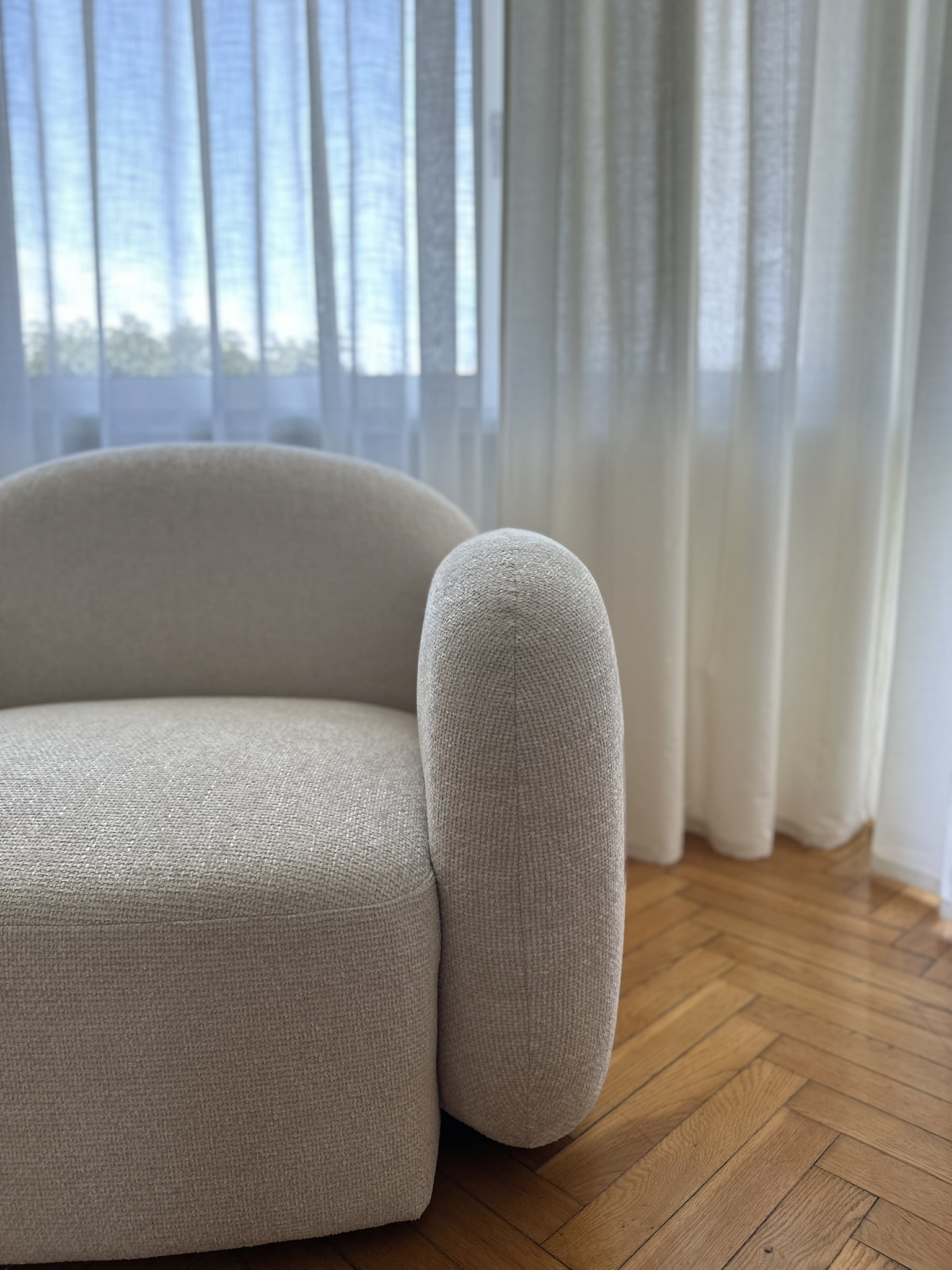 Fotel Blair to połączenie minimalistycznej formy z miękkimi, zaokrąglonymi liniami, które zapraszają do odpoczynku i przytulności. Dzięki głębokiemu, sprężystemu siedzisku i komfortowemu oparciu, stanowi doskonałe wsparcie dla całego ciała. To idealny fotel do karmienia noworodka – szerokie podłokietniki, odpowiednia wysokość oparcia i wyjątkowa miękkość sprawiają, że każda mama poczuje się w nim wygodnie i bezpiecznie podczas karmienia.