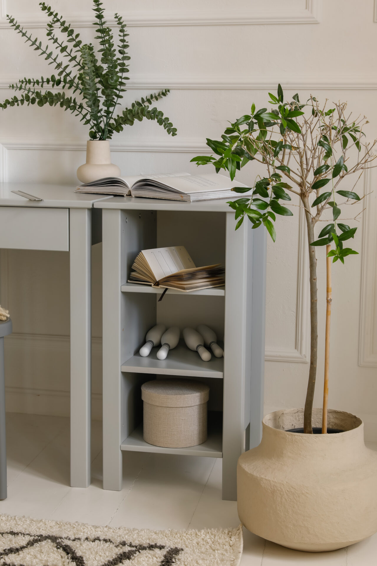 Niski regał z kolekcji Collet powstał z myślą o codziennych potrzebach dzieci i ich rodziców. Kolekcja łączy elegancki design z funkcjonalnością, tworząc przestrzeń sprzyjającą zarówno zabawie, jak i odpoczynkowi dziecka.