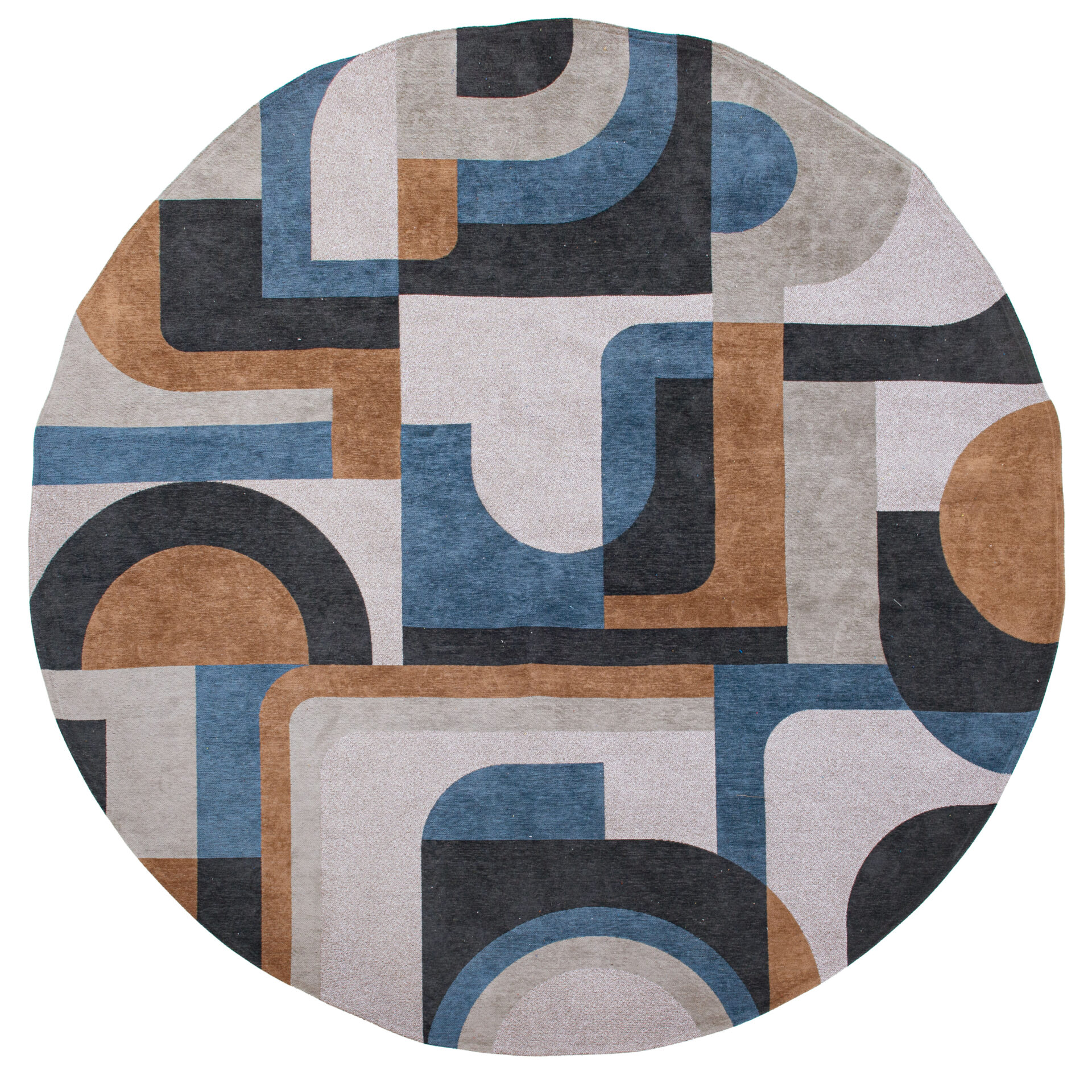 Okrągły geometryczny dywan Module Camel Blue Round z kolekcji Nuance belgijskiej marki Louis De Poortere to wyjątkowe połączenie koloru, kształtu i proporcji. Symetryczne i asymetryczne formy oraz kontrastowe barwy sprawiają, że dywan wprowadza do wnętrza nowoczesność, kreatywność i awangardowy charakter.