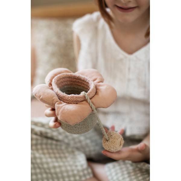 Gra w kubki z koszem w kształcie kwiatka i kulką z pomponem na sznurku, która zapewni dzieciom niekończące się godziny rozrywki.
