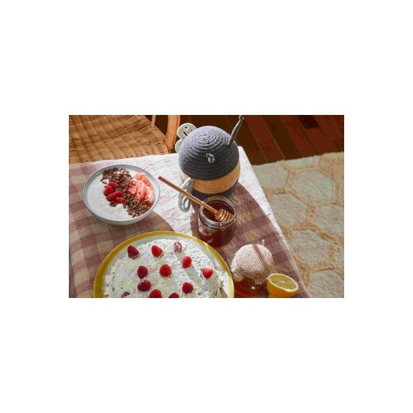 Uroczy koszyk w kształcie pszczoły, który przypomni maluchom dni spędzone na zabawie na łonie natury. Kosz Mama Bee jest wykonany ręcznie przy użyciu plecionych sznurków z przetworzonych butelek PET pokrytych bawełnianą przędzą, łącząc rzędy Honey z mieszanymi ciemnoszarymi sznurkami. Z dwoma sznurkami dodanymi jako anteny i delikatnie ukształtowanymi skrzydłami w kolorze jasnoniebieskim. Prawie jak zabawki, kosze Mama Bee i Baby Bee mogą być używane razem lub osobno, pomagając utrzymać porządek w zabawkach i skarbach najmłodszych.