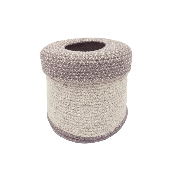 Uroczy mały kosz na śmieci wykonany z… przędzy pochodzącej z recyklingu! Ten praktyczny kosz ze zdejmowaną pokrywą z otworem pośrodku jest wykonany z plecionych sznurków z przędzy z recyklingu z naszych ścinków tekstylnych, połączonych ze sznurkami z wyłącznie naturalnej niefarbowanej przędzy bawełnianej.