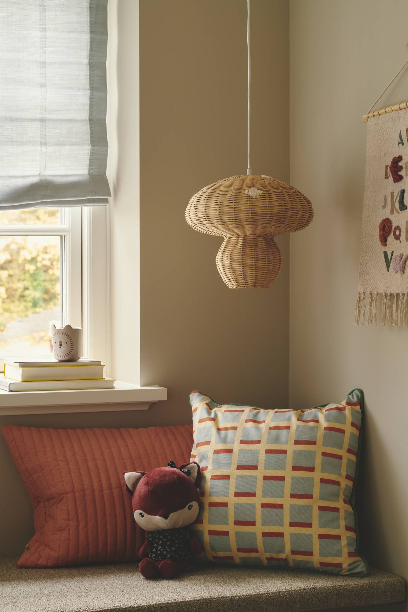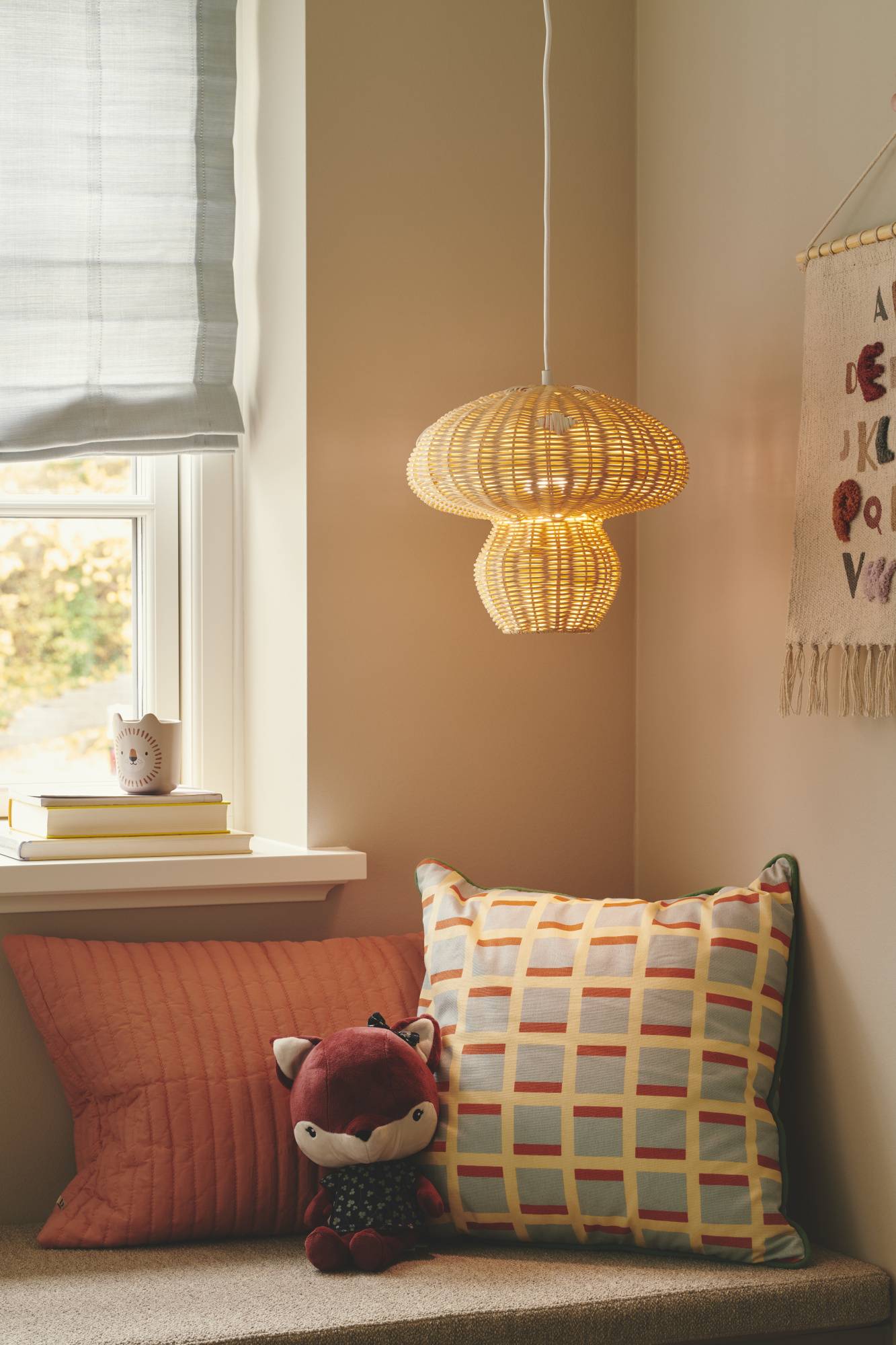 Rattanowy klosz nadaje jej organicznego charakteru, dzięki czemu światło staje się bardziej ciepłe i przyjemne. To idealny wybór do pokoju twojego dziecka.