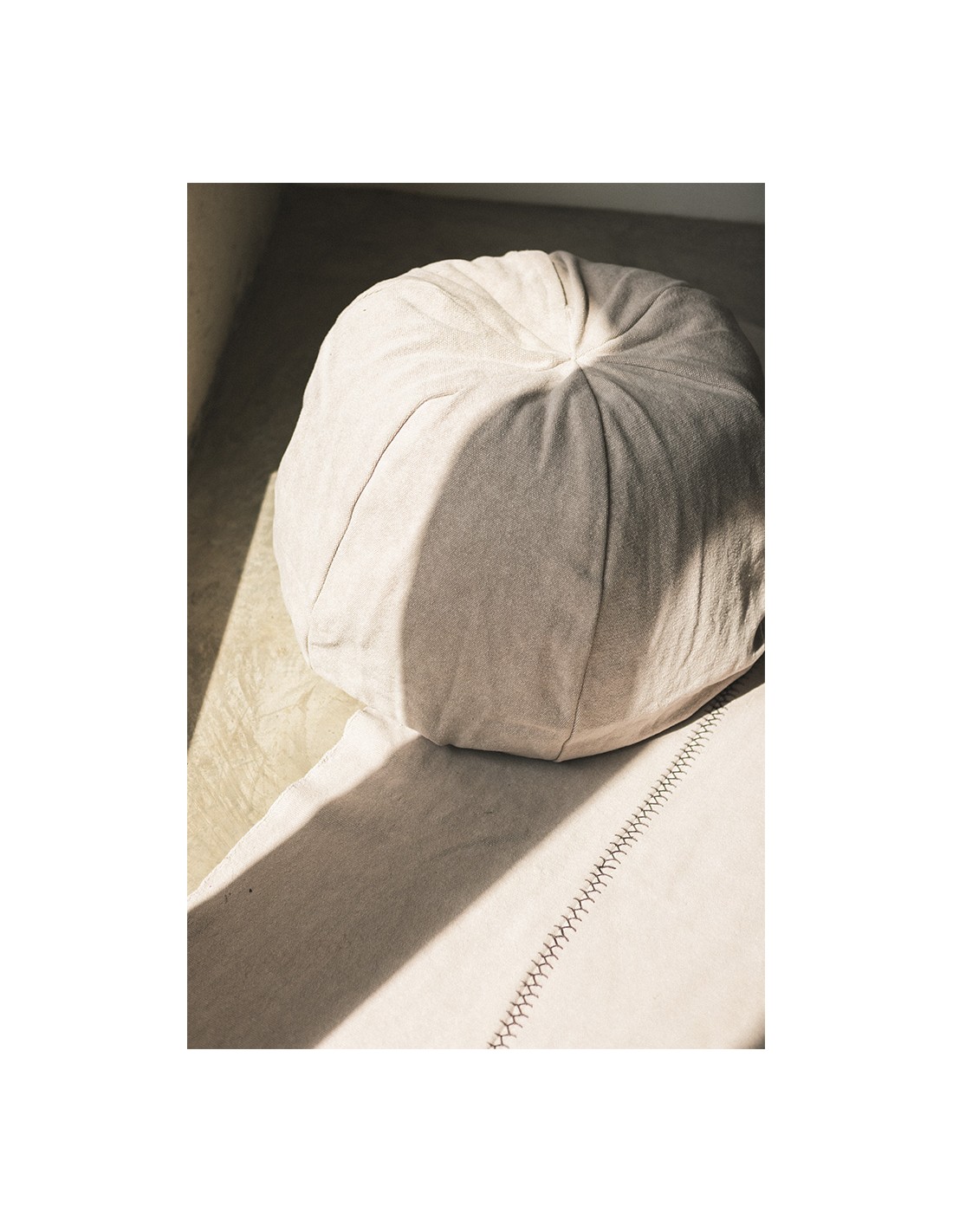 Każda pufa jest wyjątkowa – z widocznymi przeszyciami i nieregularnościami, które podkreślają jej rzemieślniczy charakter. Zdejmowany pokrowiec zapinany na suwak ułatwia czyszczenie i codzienne użytkowanie.