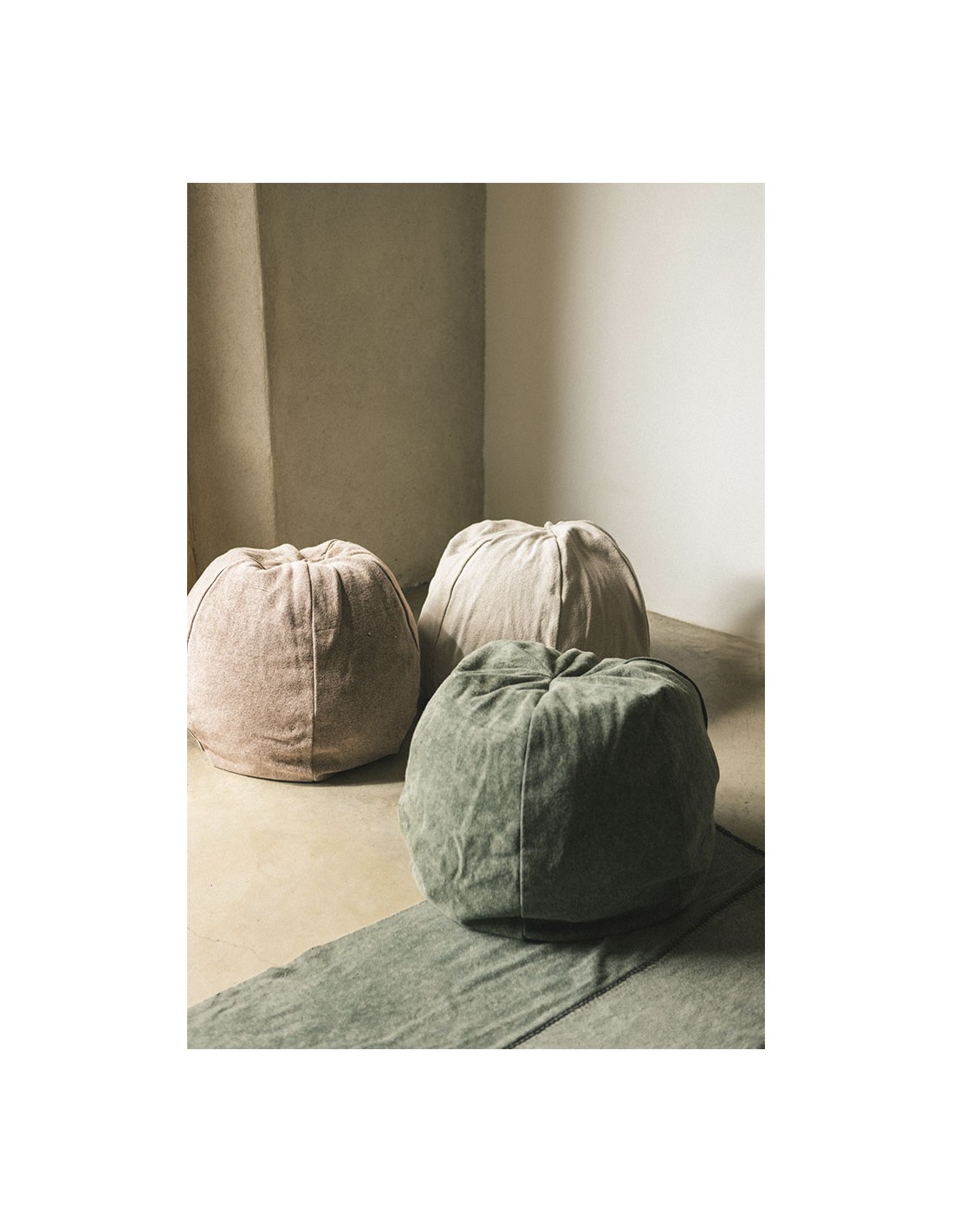 Minimalizm z duszą rzemiosła - Pufa Stonewashed Soil Brown to funkcjonalny i stylowy dodatek, który łączy surowy charakter ręcznie szytego płótna z przytulnością domowego wnętrza. Wykonana z grubego materiału z recyklingowej bawełny i wykończona techniką stonewashed, zyskuje delikatnie sprane tony, miękką fakturę i subtelne przetarcia.