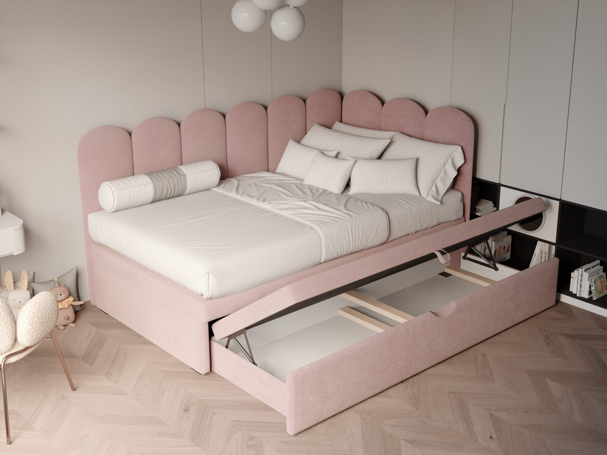 Łóżko wyposażone jest w praktyczną szufladę na pościel, co sprawia, że organizacja przestrzeni staje się łatwiejsza. Wysuwana szuflada pomieści kołdry, poduszki, a także zabawki czy inne drobiazgi, pomagając utrzymać porządek w pokoju.
