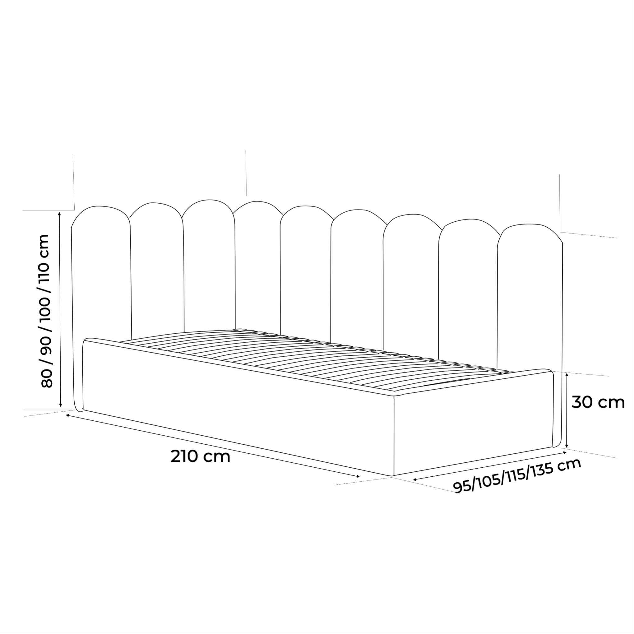 - Szerokość powierzchni spania: 80/90/100/120 cm