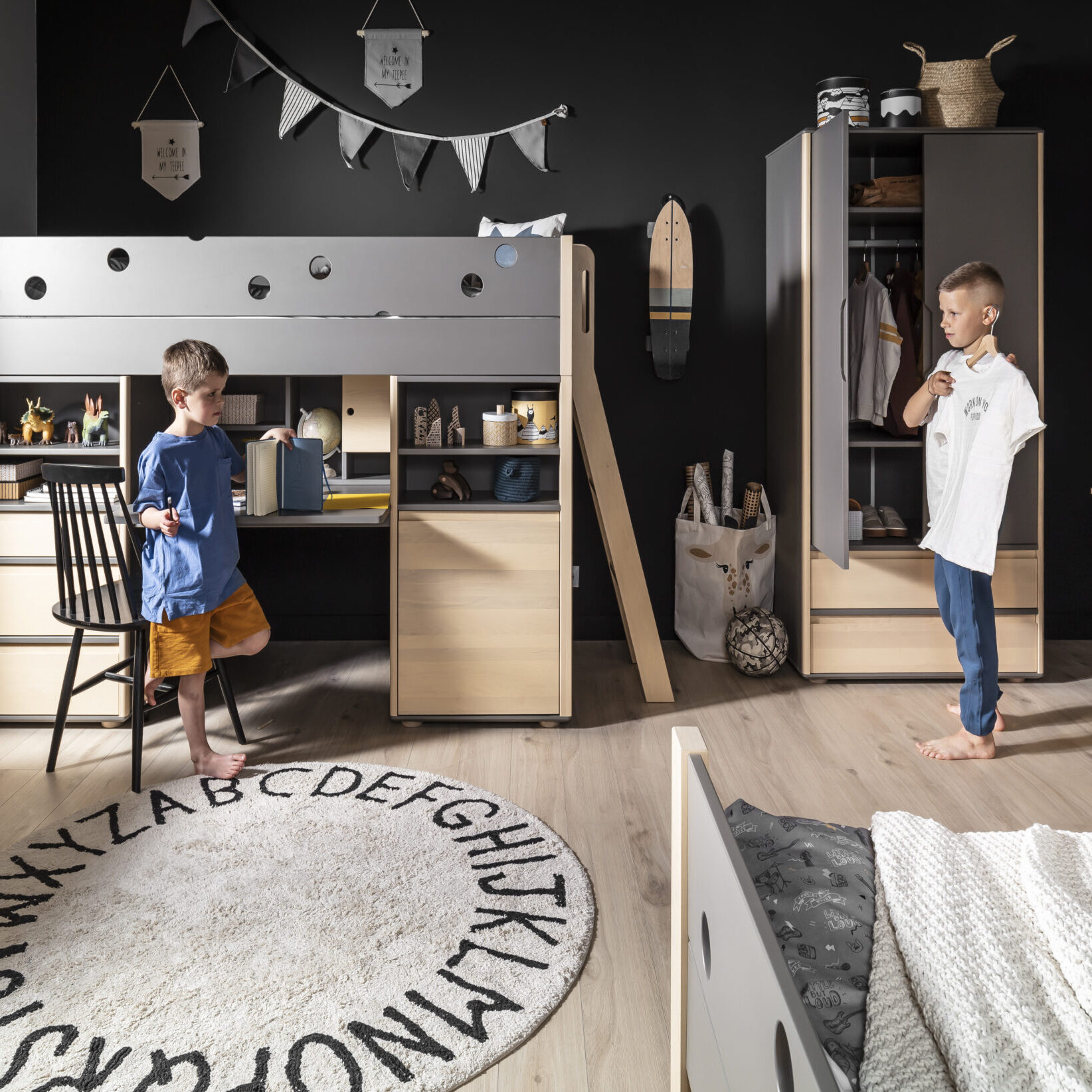 Dostępne w dwóch wariantach kolorystycznych, łóżko piętrowe z kolekcji Funflex to idealne rozwiązanie zarówno dla dziewczynek, jak i chłopców – inspirujące do zabawy, odkrywania i wspólnego spędzania czasu.