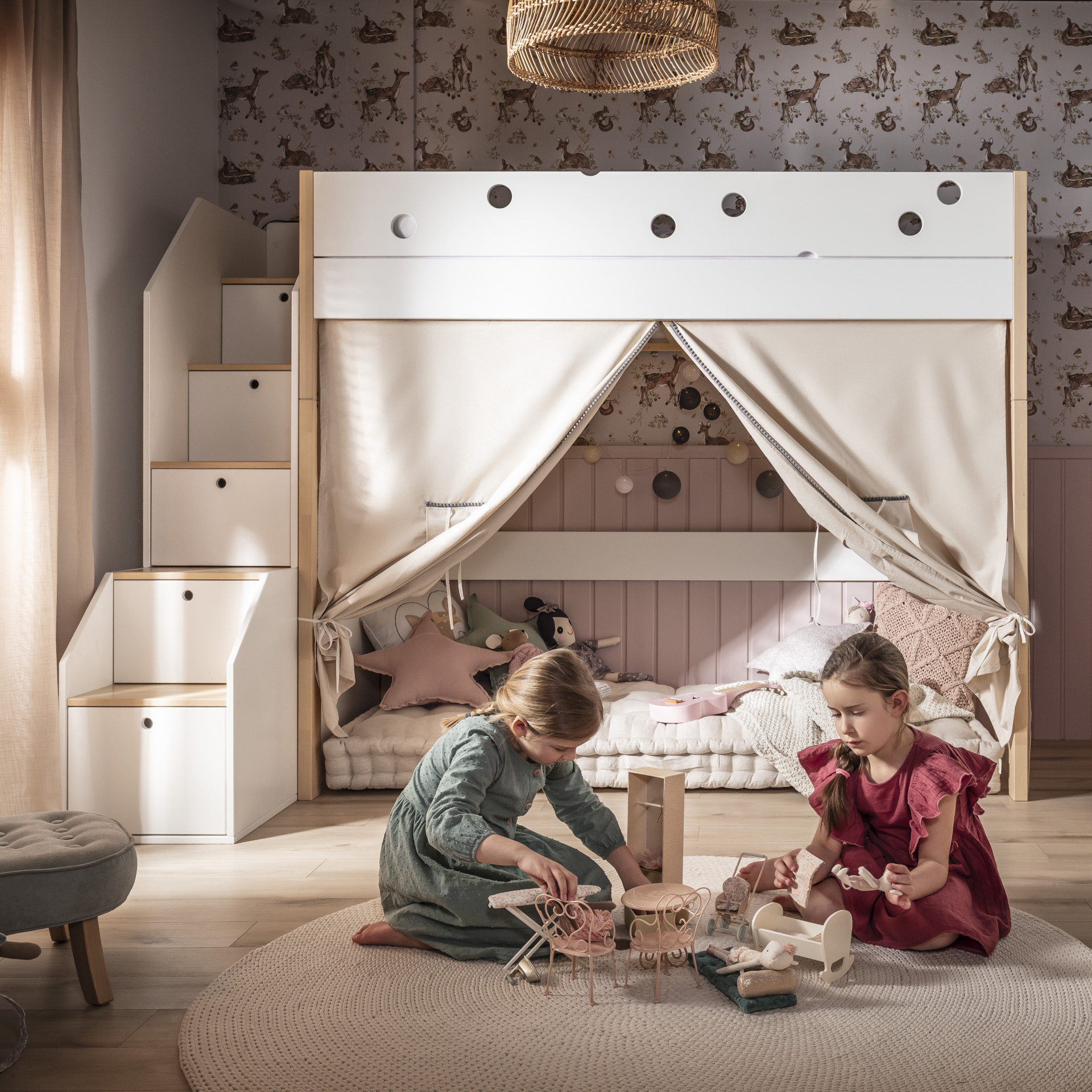 Dostępne w dwóch wariantach kolorystycznych, łóżko piętrowe z kolekcji Funflex to idealne rozwiązanie zarówno dla dziewczynek, jak i chłopców – inspirujące do zabawy, odkrywania i wspólnego spędzania czasu.