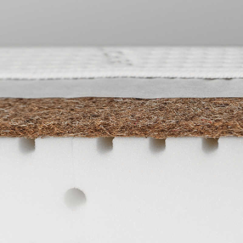 Warstwa z włókien kokosowych pochodzenia naturalnego to jeden z elementów materaca Natura. Włókna te charakteryzują się dobrymi właściwościami wentylacyjnymi oraz dają twardą powierzchnię do spania. Kanaliki wentylacyjne umiejscowione pod matą kokosową wzmacniają przepływ powietrza.