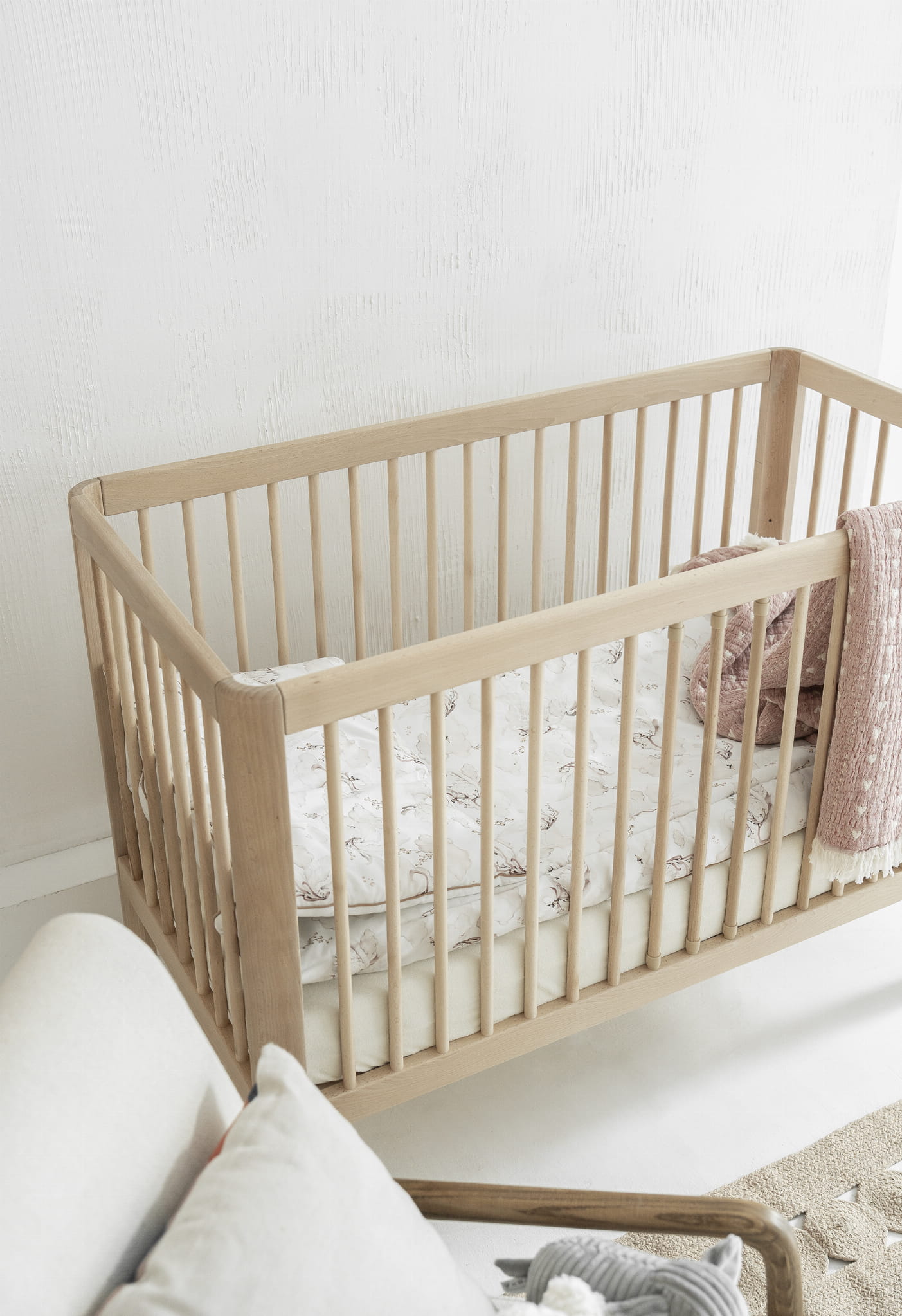 Łóżeczko z kolekcji Pinio Pure to doskonały wybór dla rodziców, którzy cenią nowoczesny design, kompaktowe rozwiązania i funkcjonalność na lata. Subtelna forma łóżeczka – oparta na kształcie zaokrąglonego prostokąta – nadaje bryle wyjątkowej lekkości i świeżości, sprawiając, że mebel harmonijnie wpisuje się w aranżacje zarówno klasyczne, jak i nowoczesne.