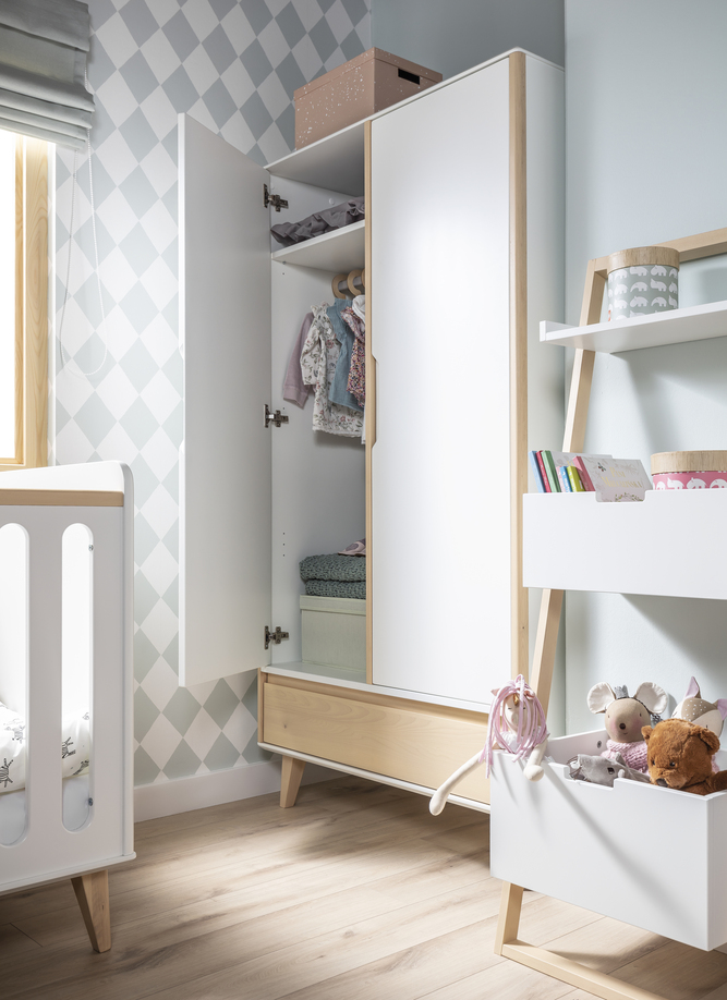 Szafa dwudrzwiowa z kolekcji Loopi to propozycja, która łączy w sobie ponadczasowy styl inspirowany wzornictwem lat 60. i 70. z nutą skandynawskiej prostoty. Jej design w połączeniu z funkcjonalnością sprawi, że będzie idealnym uzupełnieniem pokoju dziecka, a także każdego nowoczesnego wnętrza.