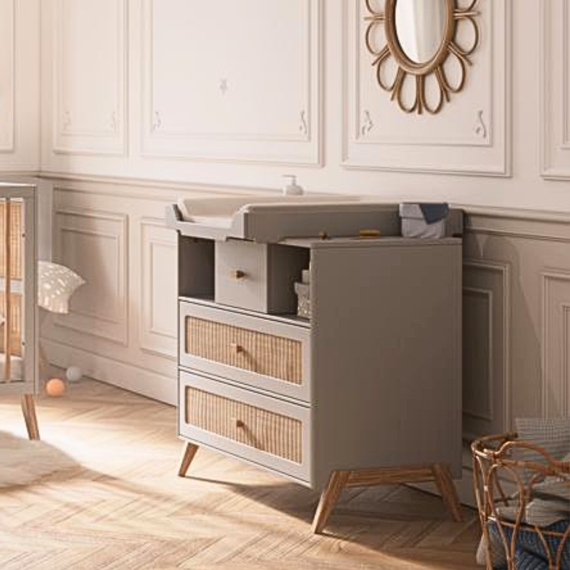 Komoda dziecięca z przewijakiem rattanowa – Neige Marelia