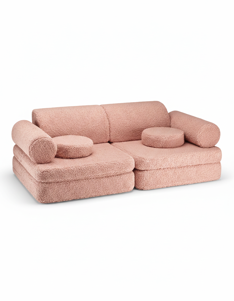 Dziecięca kanapa Guava to wszechstronna sofa do zabawy, zaprojektowana z myślą o niekończących się przygodach i przytulnym relaksie. Jej 9-elementowa modułowa konstrukcja pozwala małym budowniczym na kreatywne tworzenie fortów, pojazdów czy sekretnych kryjówek, rozwijając wyobraźnię podczas codziennych aktywności.